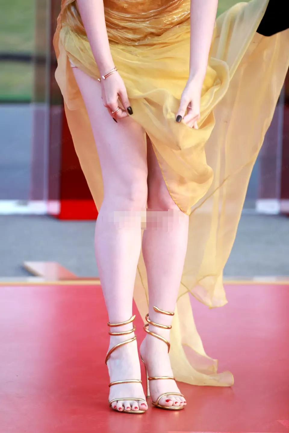 蒋梦婕的肤色就是传说中肤如凝脂吧,美中不足的是鞋子有点小! 金鸡奖红毯上,明星们可谓是八仙过海,各显神通,将自己打扮的光鲜亮丽,尽最大可能的向我们展示她们的魅力。毫无疑问,除了颁奖,明星们走红毯是大家另一个最大的看点。 本届金鸡奖依然星光璀璨,老中青演员们都有出席,比如87岁的老艺术家祝希娟,比如53岁实力派演员颜丙燕,又比如当红小花关晓彤和陈都灵等。 当天出席活动的男星女星们造型中规中矩,要么西装革履,要么知性优雅或者性感的晚礼服。但有一人的出现,让人眼前一亮,她就是蒋梦婕! 蒋梦婕一身金色透视丝裙惊艳亮相,头戴同样颜色纱巾的她带有些许异域风格。显然,蒋梦婕的出现立马成为摄像机捕捉的焦点。 蒋梦婕除了漂亮,造型耳目一新,让人称道的还是她那与众不同的皮肤,身材好的同时皮肤白里透红,温润如玉。或许这就是传说中的肤如凝脂吧。 不过稍微美中不足的是蒋梦婕的鞋子好像有点小,设计上亦是简约不简单的风格。有一说一,这双鞋穿起来难度还是很大的,或许只有蒋梦婕能够驾驭。如果鞋子稍微大一点,就完美了,可以给出满分。