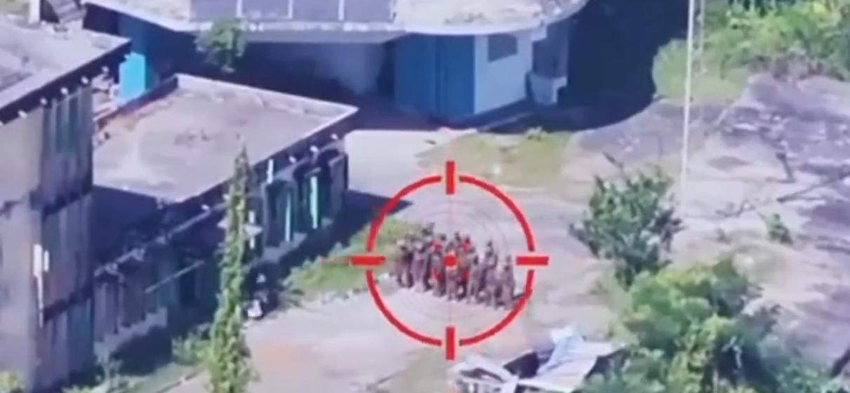 集合中的缅军部队被炮击! 若开军使用远程火炮,袭击了位于若开邦皎漂港附近气象站内的缅甸政府军,当时缅甸政府军的士兵,正在排队合影,结果被炮弹准确命中,现场造成了大量伤亡。从博主发布的截图来看,图一中的前后两列官兵,几乎全挂了!后续没噶的缅军士兵,拖着其余官兵的遗体,就去找隐蔽位置。 若开军这一次突然袭击,打得真的是措手不及,怎么这么巧呢?在缅甸政府军集合拍照的时候,发动了火炮袭击,看来是有一架无人机,在远处负责侦察和扫描,然后发现了缅甸政府军的目标,之后炮兵部队得到坐标,一炮就带走了多名缅军士兵。 博主这次发的视频截图,在整个炮击结束之后,大概有两三名缅军士兵活了下来,非常慌乱。但是仍然还得全力救治那些被火被炮弹炸伤的同伴。可惜的是,地上横七竖八地躺了多聚一体,基本上已经不可能救回来了。 这一次袭击,确实有点水平,趁着缅甸政府军集结一起拍照,然后发动袭击,简直不要太巧合,这也可以看出来,若开军能达成这个水平,还真的是有点实力。