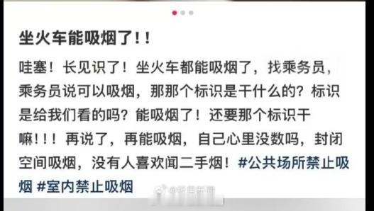 绿皮车厢该禁止吸烟吗?我认为可以,但是不能一刀切而是应该将一部分车厢设置为禁止吸烟的,而一部分车厢设保持原状,毕竟,现在还需要经常坐绿皮火车的,都是父辈,他们大多数收入不高,也都是老烟枪,需要一个过渡阶段。