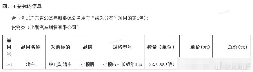 我记得最早小鹏作为警车是在肇庆那会儿的小鹏G3,但是因为小鹏肇庆工厂落地这次是小鹏P7+中标广东省公务车,这属于正式“编制”,和象征性放两个不一样而且国产车有个很神奇的事儿,就是只要成为了警车,颜值就有很大的提升,可能因为警车的拉花真的很好看,可以看图2,是不是很可以这批车会10月陆续交付给相关部门,到时候街头应该就能看到了不得不说小鹏作为广东本地新势力车企,真的是深度相连的,还记得全运会就是大师兄压轴传递火炬话说图6这个上面意思是采购33辆吧