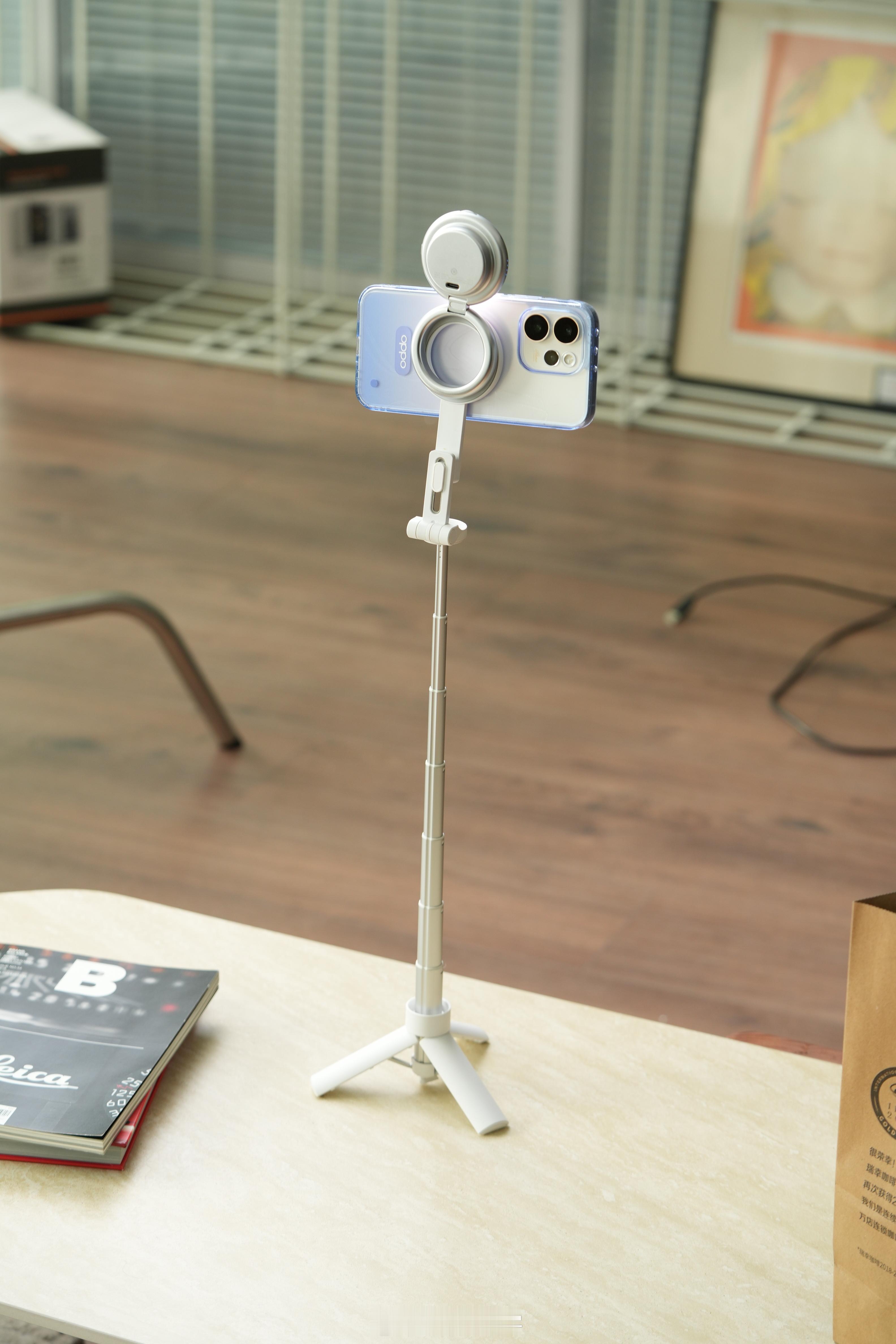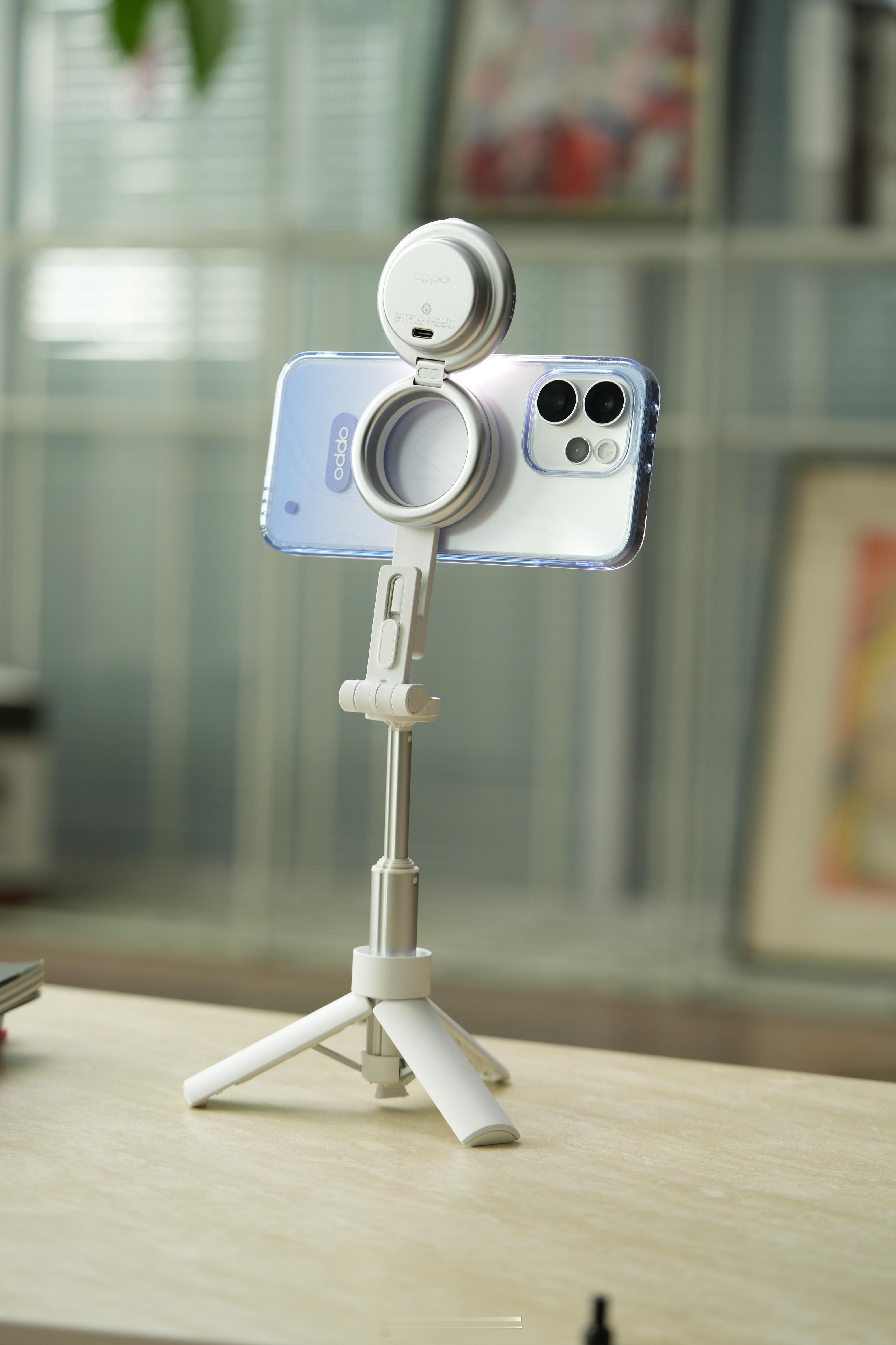 OPPO 这次发布了个直播神器——直播套装,搭配Reno15 Pro使用,有磁吸自拍支架,有磁吸闪补光灯环,有磁吸小涡轮无线充电器,搭配AI直播助手,无论在哪随时随地开播!