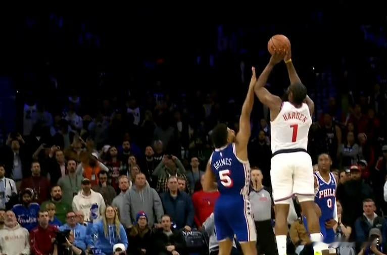 有犯规啊!哈登冤死了! 比赛最后8.4秒,哈登强行三分球出手不中,随后抢下篮板的压哨三分球出手依旧未能命中,快船队最终以108-110憾负76人队。 从慢放可以发现,哈登出手三分球时被格莱姆斯明显打手犯规,但裁判并没有吹罚,这让哈登非常生气,比赛结束后依旧追着裁判不依不饶,表情非常沮丧。