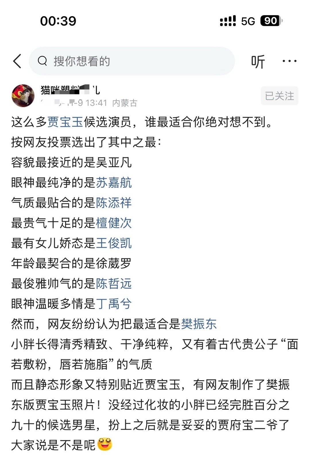 这么多贾宝玉候选演员,谁最适合你绝对想不到。