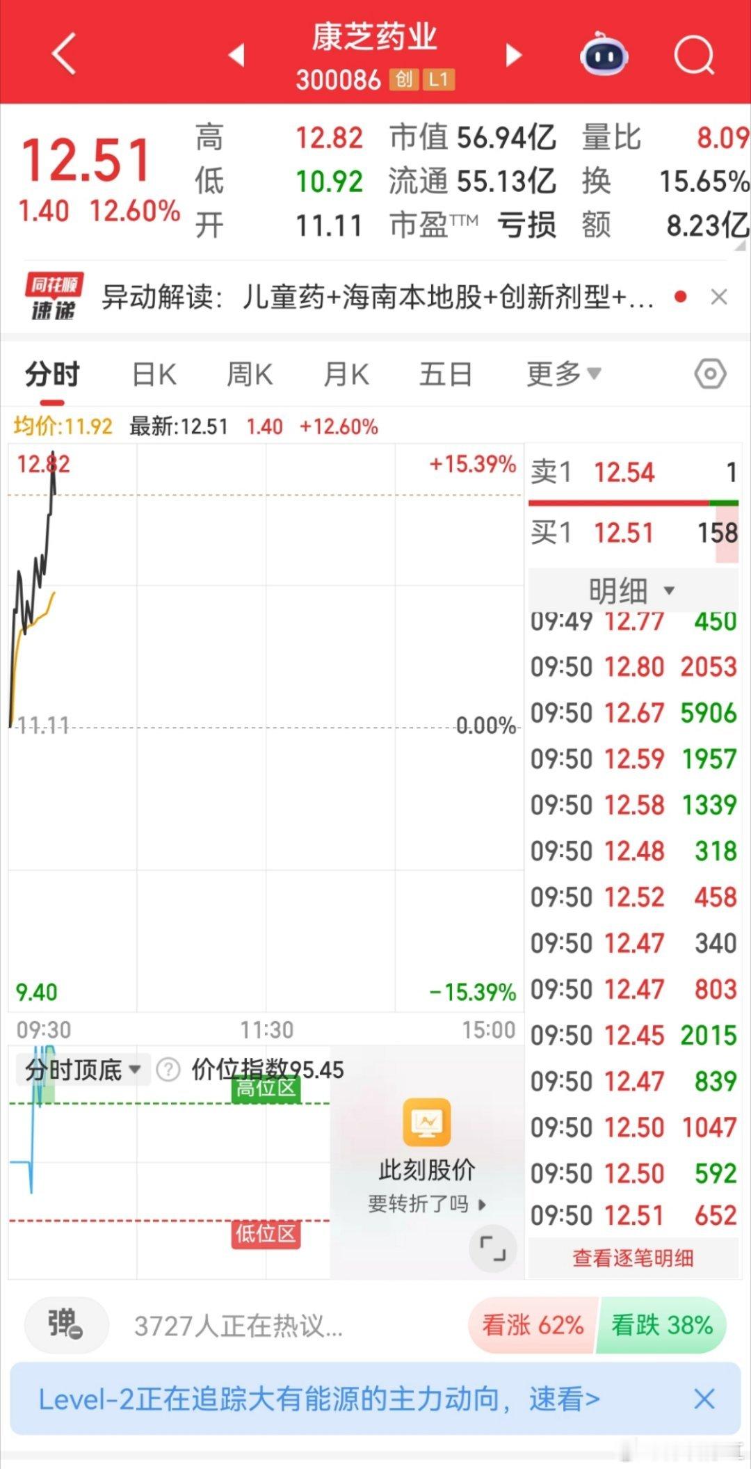 莎莎早上卖的30000股,还没有接回,千万别上去一波,等等我呀!我想尾盘再接比较