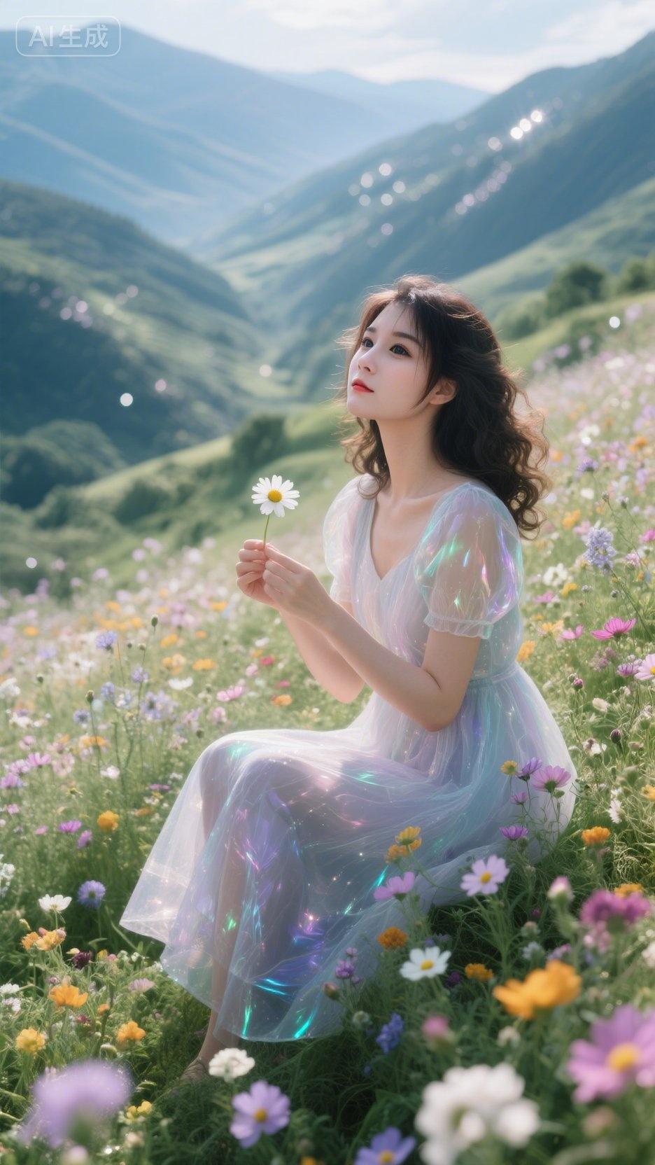山风裹着花的气息漫过来,裙摆沾了星子的光。手里这朵雏菊,是山野递来的温柔信笺。