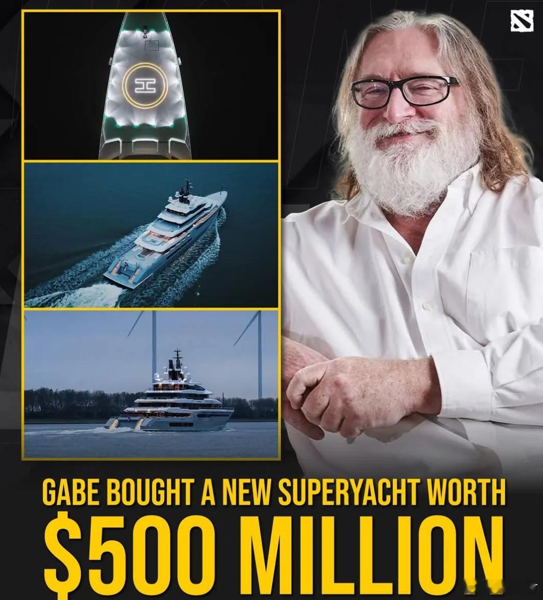 G胖买的价值5亿美元的游艇到货了,长111米,船上配有医院、两个健身房、250平的沙滩俱乐部、水疗中心、酒吧、跳水平台、一个顶级电竞房,里面配有15台最高配置电脑。另外,我想告诉你们的是,G胖不仅买了这艘游艇,制造这艘游艇的公司也买了