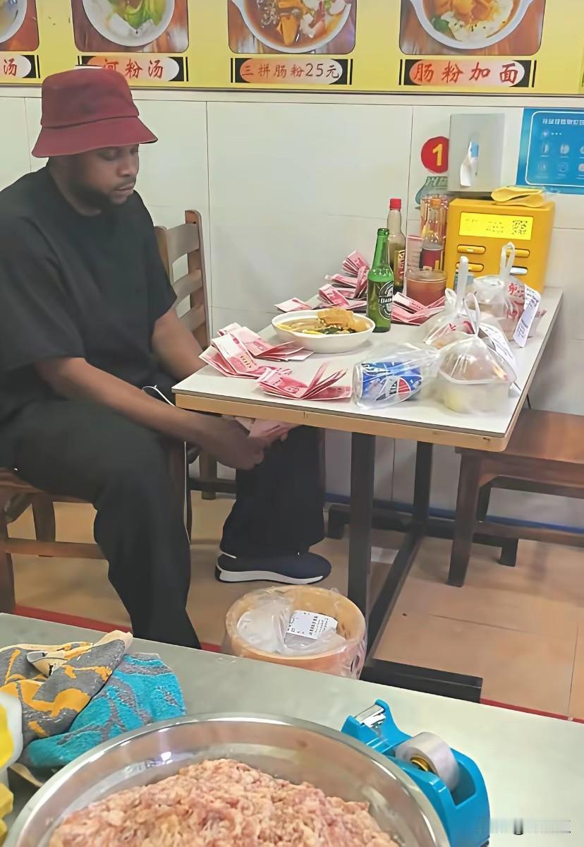 非洲留学生是真有钱啊,看,这一桌子的人民币,红彤彤的,上万块了吧? 某博主报道,广东一非洲留学生快餐店数钱! 媒体报道,非洲的经济情况不是很一般吗?但现在看也有信息茧房,至少我个人从中文社群媒体上看到的非洲留学生的经济情况都不错,在华生活的也比较惬意! 中国人说财不露富,注意安全就行了!