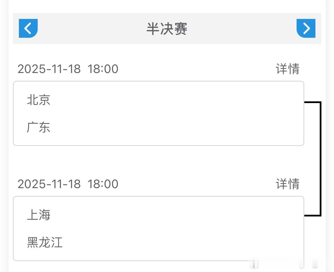男子团体半决赛 18:00北京🆚广东上海🆚黑龙江