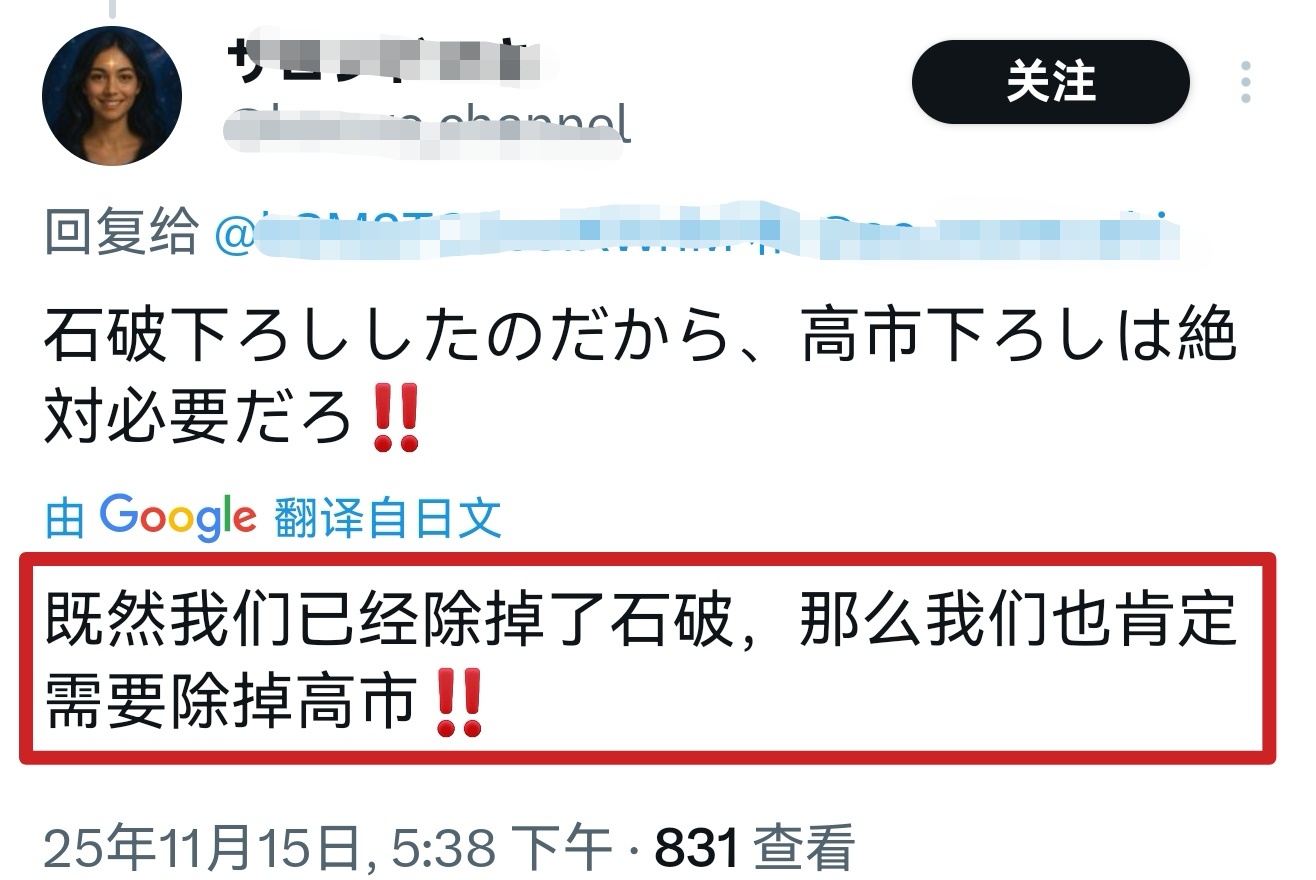 日本网友呼吁除掉高市