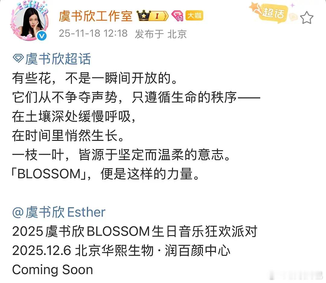 虞书欣BLOSSOM生日音乐狂欢派对官宣,12.6北京