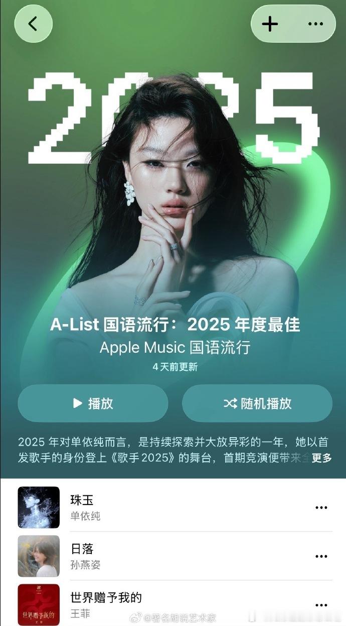 AppleMusic2025最佳国语流行揭晓,单依纯《珠玉》强势登顶,抒情