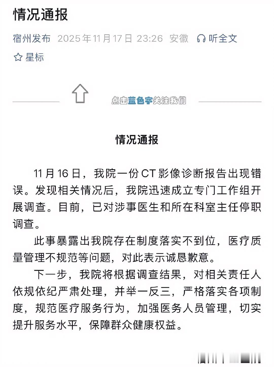 简直荒唐至极! 男女都分不了吗? 一男子的CT检查报告单上, 竟出现“子宫及双侧附件区未见异常”字样。 这种算是低级错误, 而在医疗中的犯的错误, 不管大小, 都有可能成为草菅人命。 这次医院倒是反应迅速, 涉事医生和科室主任停职整顿。 希望每一个医者都能真正重视每一个病者, 医院能规范每一个医疗行为。