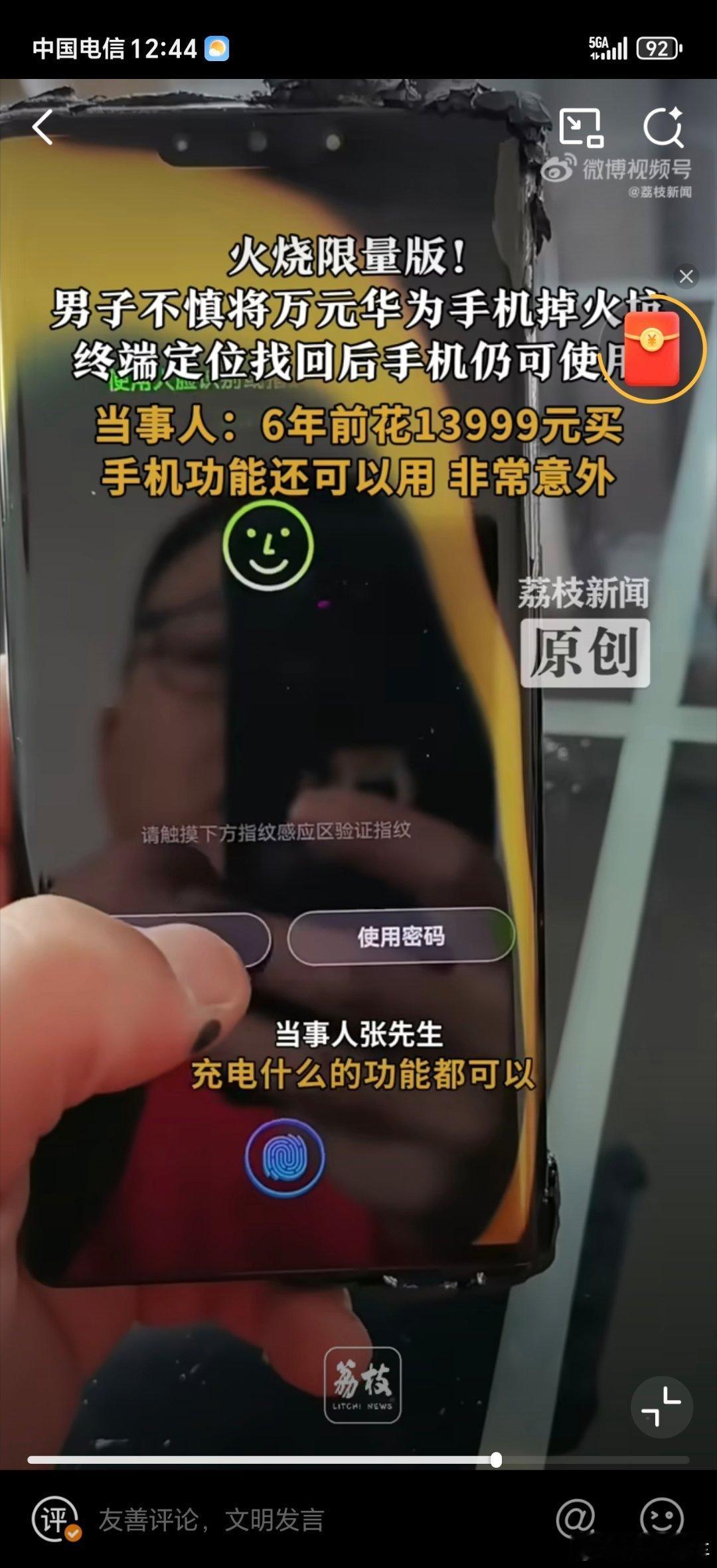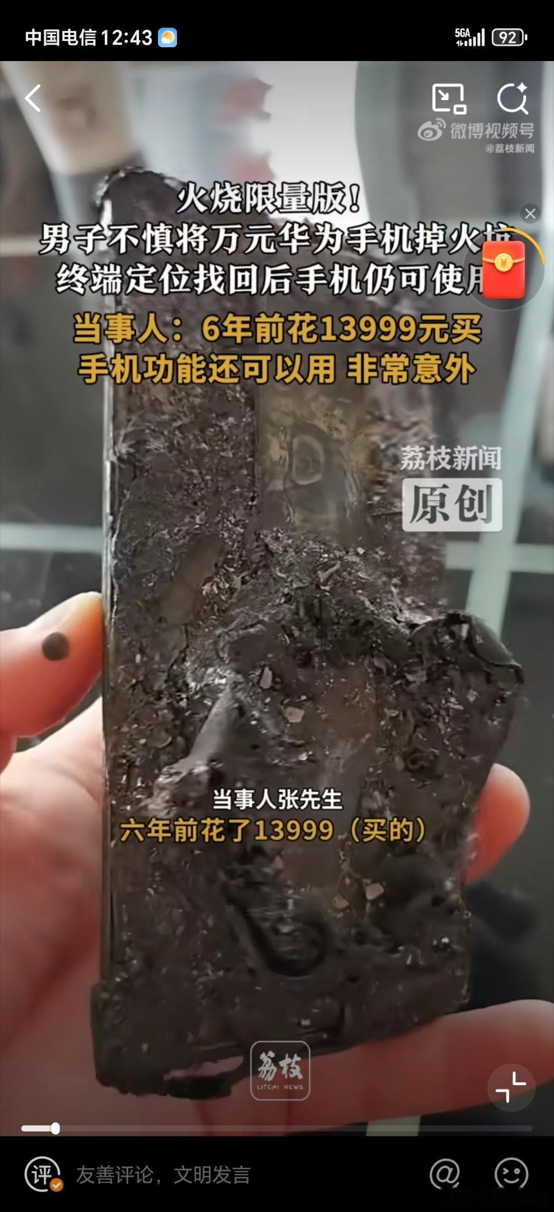 华为高端机果然名不虚传!13999元用6年,掉火坑烧完还能开机,电池、充电功能都正常,硬核品质圈粉无数~确实牛