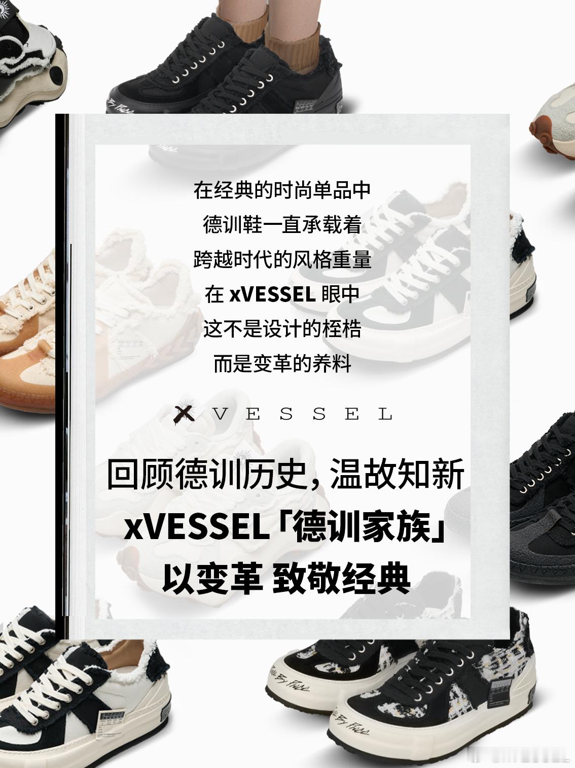 不只复古,德训的美在于演进🔛当经典走入当下,是重复过去,还是重塑未来?德训鞋,这枚跨越半世纪的符号,被不同笔触重新书写我们解构符号,只为重构美学让历史与未来,在xVESSEL「德训家族」中对话左滑配图,看经典是如何在历史中演进的💫