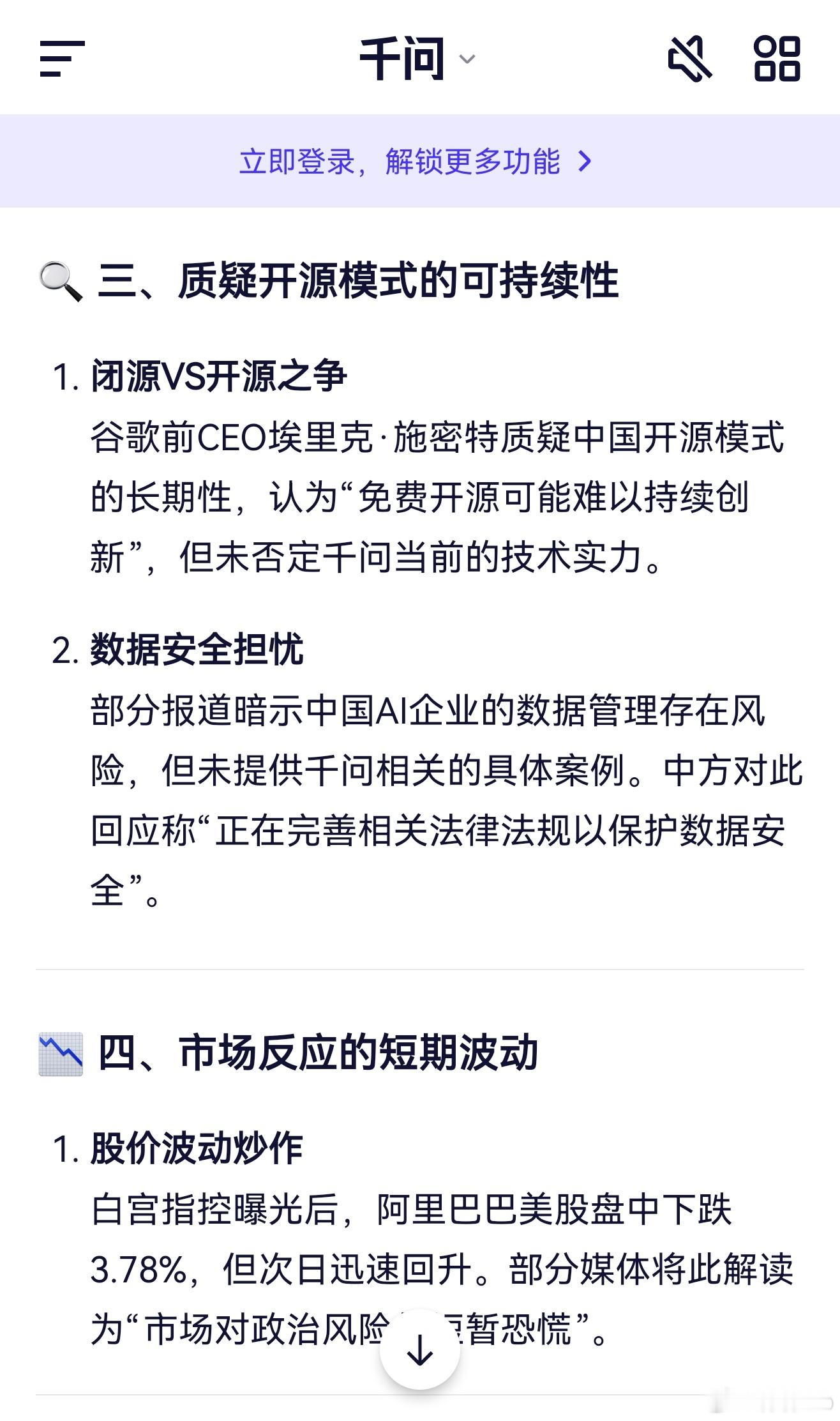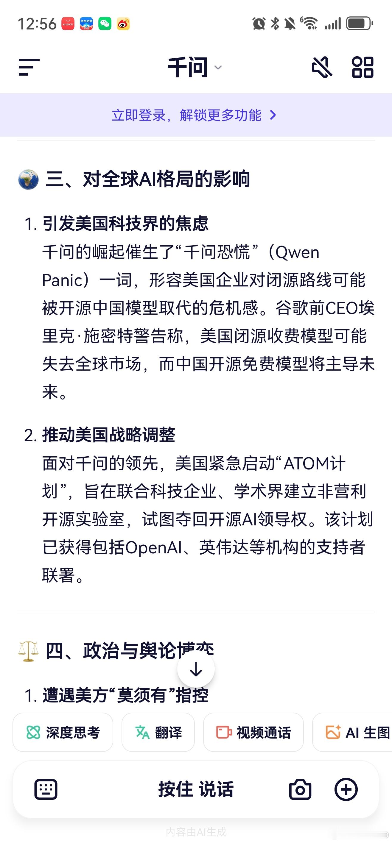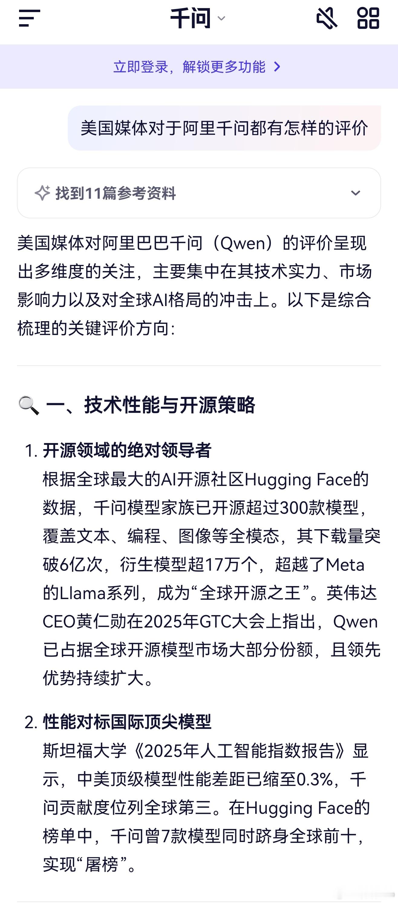 阿里千问公测,下载体验,先两问题:1.美媒对阿里千问的评价。2.美媒对阿里千问的负面评价。这回答,我觉得还挺客观的。