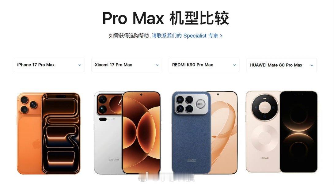 请选择你的Pro Max:4K价位段红米K90Pro Max6K价位段小米17Pro Max8K价位段华为Mate80Pro Max10K价位段iPhone17Pro Max