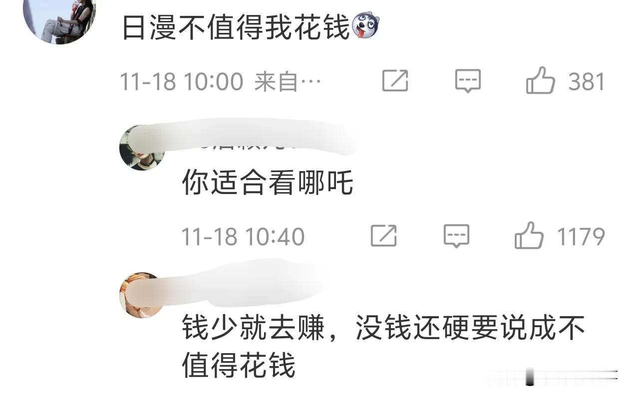 因为早苗不当言论,我国暂缓日本电影上映后,鬼灭之刃票房大跌,昨日票房2539.41万,较前一日减少6460.67万,今日票房预计不超过2000万。 网友:好看就看。 网友:有问题找早苗,而不是质问为什么下架日片。 网友:日漫不值得我花钱。 网友:你适合看哪吒。 网友:钱少就去赚,没钱还硬要说成不值得花钱。 看到网友的评论,我想说请问看哪吒很丢人吗?爱看日漫上升国漫干嘛?谁会连一张电影票都买不起!看个日漫骄傲成这样。