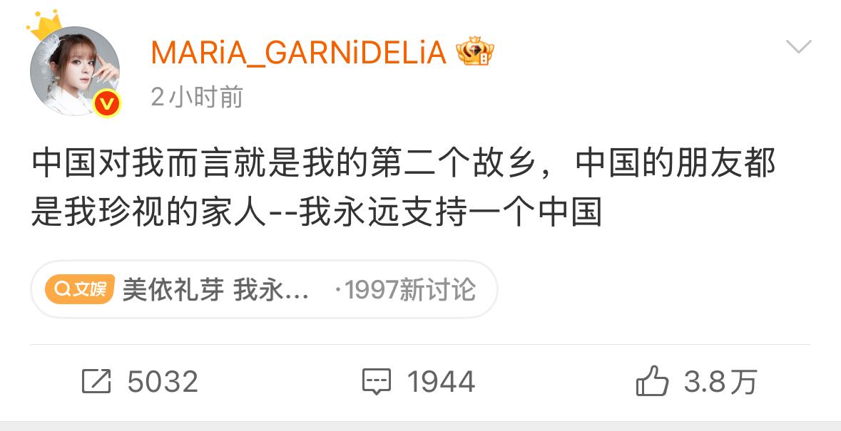 知名日本歌手美依礼芽表态:永远支持一个中国。此外,小美还大胆示爱,坦言中国是她的第二故乡,中国朋友是她珍视的家人。 好好好,对得起当初录制《乘风破浪的姐姐》时中国观众给你投的票,为你鼓的掌。 据悉,美依礼芽是日本知名歌手,为日本茨城县人,早前因《极乐净土》被中国网友喜爱,后又因参与综艺《浪姐》火出圈,论长相甜美可爱,论实力唱功了得,在这样的局势敏感期能够勇敢表态,太难得!