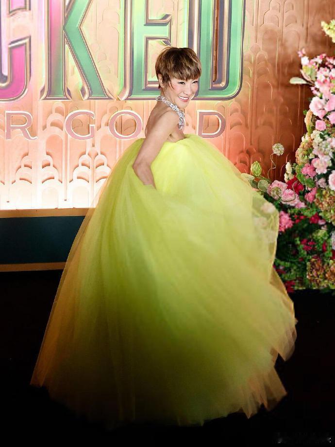 杨紫琼这棕色超短发真的好减龄!纽约首映礼上穿的荧光黄蓬蓬裙,蓬松又灵动