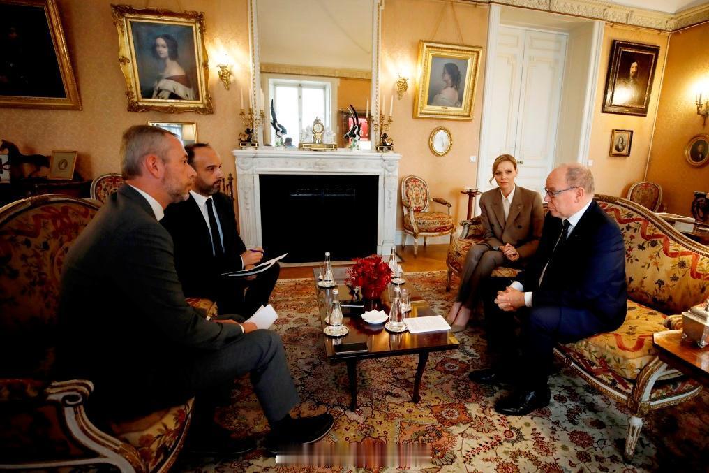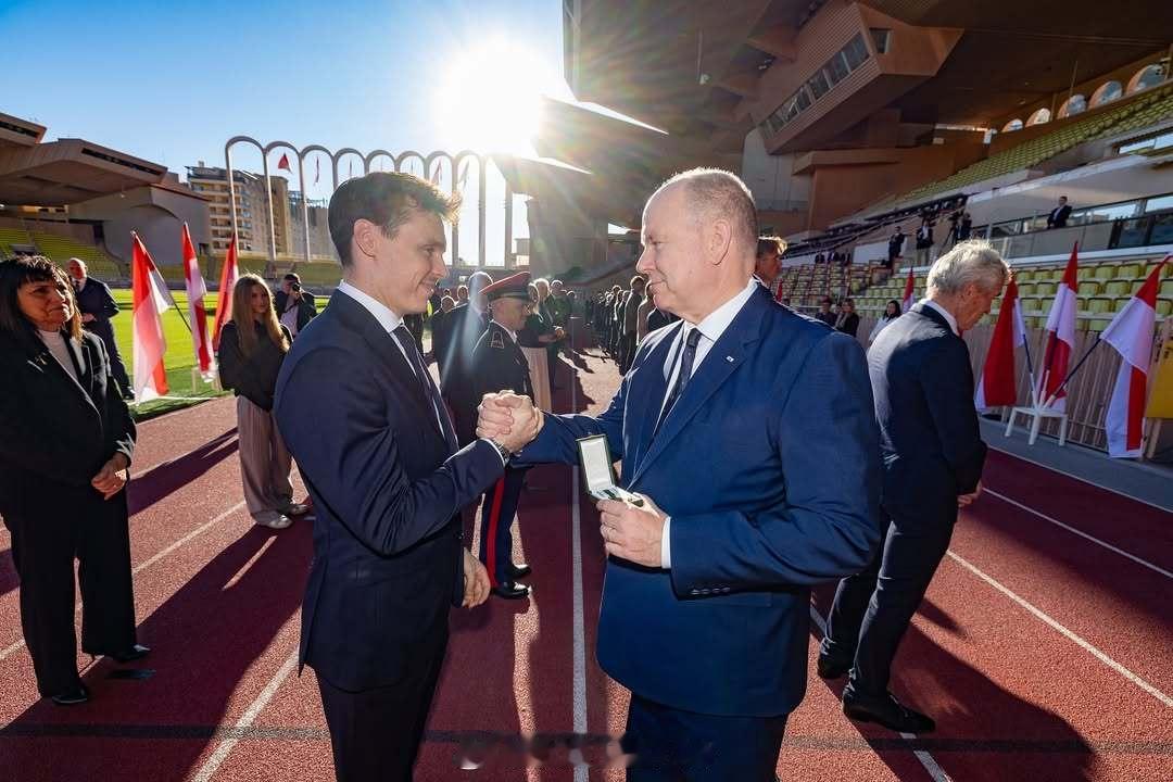 11.17 摩纳哥亲王阿尔贝二世和王妃夏琳出席国庆节前的体育系统勋章授予活动,获奖的有斯蒂芬妮儿子路易斯,也见到了摩纳哥(网)球王瓦伦丁·瓦舍罗更早一些阿尔贝和夏琳接受了个例行采访