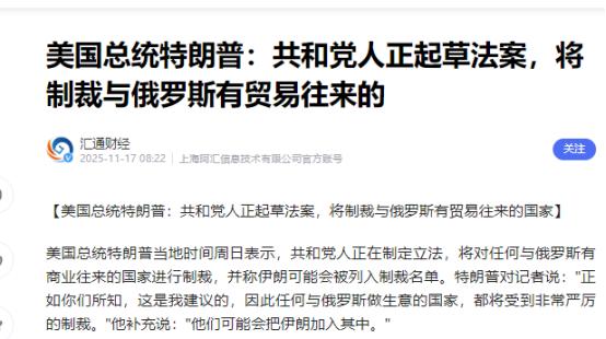 特朗普:将对任何与俄罗斯有商业往来的国家实施制裁   据彭博社报道,特朗普宣布,共和党人正在推进一项法案,将对任何与俄罗斯有商业往来的国家实施制裁。   他自己说得挺得意,直言这份法案“令他满意”,还强调这是自己明确支持遏制莫斯科融资的最直接证据。特朗普还补充了一句,“他们可能会将伊朗加入这一名单”,意思是要把伊朗也拉进来一起收拾。   可这法案看着唬人,实际推进起来早就卡壳了。这法案其实4月初就由两党参议员提交了,可到了10月,参议院直接宣布暂停推进。共和党领袖约翰·图恩倒是说了实话,称这法案本来是想当成迫使俄方坐回谈判桌的工具,现在因为特朗普要和普京会晤,就先放一放。   有意思的是,特朗普和普京的会晤后来还被搁置了。白宫官员证实,原本计划在布达佩斯的见面泡汤,特朗普自己也对之前美俄会晤后俄乌谈判没进展感到失望。   咱们再说说这法案里的具体内容,那是真敢写。提案明确规定,只要有国家从俄罗斯购买石油、天然气、铀这些商品,它们对美国出口的商品就要被征收500%的关税。这相当于直接把关税飙到五倍,简直是要断了这些国家和美国的贸易路。   可稍微有点常识的人都能看出来,这招根本行不通。先不说别的,全球多少国家都在和俄罗斯做生意?印度常年从俄罗斯买低价石油,欧洲不少国家至今还依赖俄罗斯的能源相关产品,就连美国自己的一些盟友,私下里也没完全切断和俄罗斯的商业往来。   真要是按这法案来,这些国家全得被制裁。印度能愿意?欧洲盟友能答应?到时候别说遏制俄罗斯了,美国先得把自己的盟友体系搅得鸡犬不宁。   更关键的是这法案连美国自己人都看不下去了。肯塔基州的共和党参议员保罗·兰德直接警告,要是这法案真通过了,“损失最严重的国家可能是美国自己”,不管是经济上还是战略上,美国都得吃大亏。   这话可不是空穴来风。美国这些年搞制裁就没少搬起石头砸自己的脚。之前对古巴制裁了六十多年,结果古巴没垮,美国企业却丢了一个大市场,不少依赖古巴资源的行业直接受损。对伊朗两度踢出SWIFT系统,最后也没达到预期目的,反而让伊朗加速去美元化,美国自己的金融影响力还受了影响。   现在要搞的这套“连坐式制裁”,本质上就是胁迫外交的老套路。美国总想靠着自己的霸权,逼着其他国家选边站,可时代早就变了。没有哪个国家愿意平白无故放弃自己的商业利益,为了美国的政治目的买单。   就在这法案被搁置的同时,美国财政部倒是没闲着,宣布制裁了俄罗斯最大的两家石油企业——俄罗斯石油公司和卢克石油公司。彭博社估算,这两家企业的原油出口量占了俄罗斯总出口量的近一半。   可就算制裁了这两家企业,美国也没敢真的推进那项“连坐法案”。毕竟他们心里清楚,制裁单个企业和制裁所有贸易伙伴,完全是两码事。前者顶多让俄罗斯疼一下,后者直接会引发全球贸易震荡。   要知道,现在全球经济相互依存度多高。美国真要是敢对所有和俄有商业往来的国家动手,首先受冲击的就是美国本土的消费者和企业。不少美国企业需要的原材料、能源产品,都得通过第三方国家间接从俄罗斯进口,一旦制裁生效,这些产品的价格会疯涨,美国的通胀压力会直接爆表。   而且这事儿还会严重破坏美国的外交信誉。之前美国就总逼着盟友跟着自己搞制裁,不少盟友已经有苦难言。现在要是搞这种“一刀切”的连坐制裁,只会让更多国家反感,甚至会推动更多国家远离美元结算体系,反而加速美国霸权的衰落。   特朗普这波操作,看着是想展现强硬态度,实际上根本没考虑实际后果。一项连自己人都反对、连推进都要暂停的法案,就算喊得再响,也只是虚张声势。   真要按这法案来,最后制裁的不是俄罗斯,而是美国自己的经济利益和国际地位。毕竟现在的世界,早就不是美国想怎样就能怎样的了,靠胁迫和制裁解决不了问题,反而会让自己越来越孤立。   来源:汇通财经