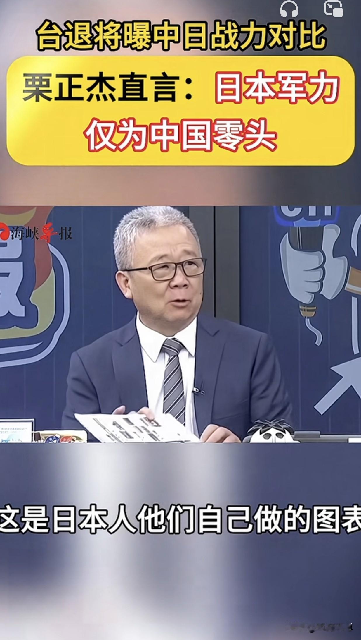 台退将栗正杰说了一句实话,值得日本人和台湾地区的人深思。他直言不讳的指出,日本的军力仅为中国零头。他用的是日本人自己做的图表,对比后得出的结论。其实这个结果,大家都是知道的。中国早就不是百年前积弱的样子。现在的我们,是世界上少数几个大国之一。即便面对日本的主子,我们也无惧。所以,我很纳闷,高市哪来的底气,谁给的勇气?栗正杰的话,撕开了日本的遮羞布。希望日本民众能明白一个道理,挑衅中国,对你们没有任何的好处。所以请你们让高市闭嘴。谢谢!