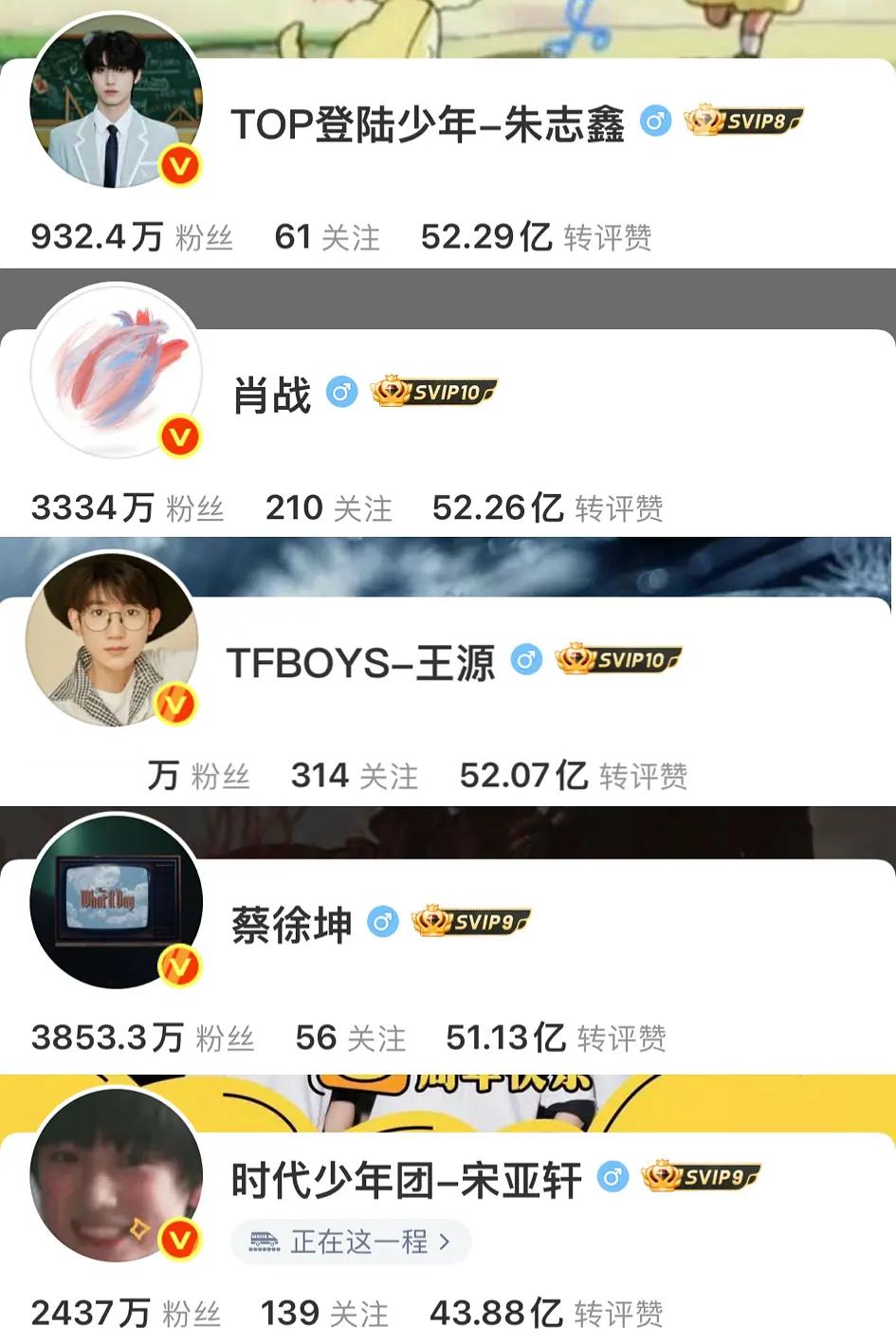 楼三代男团C位队长朱志鑫微博数据也太厉害了 棍丝还是🐮