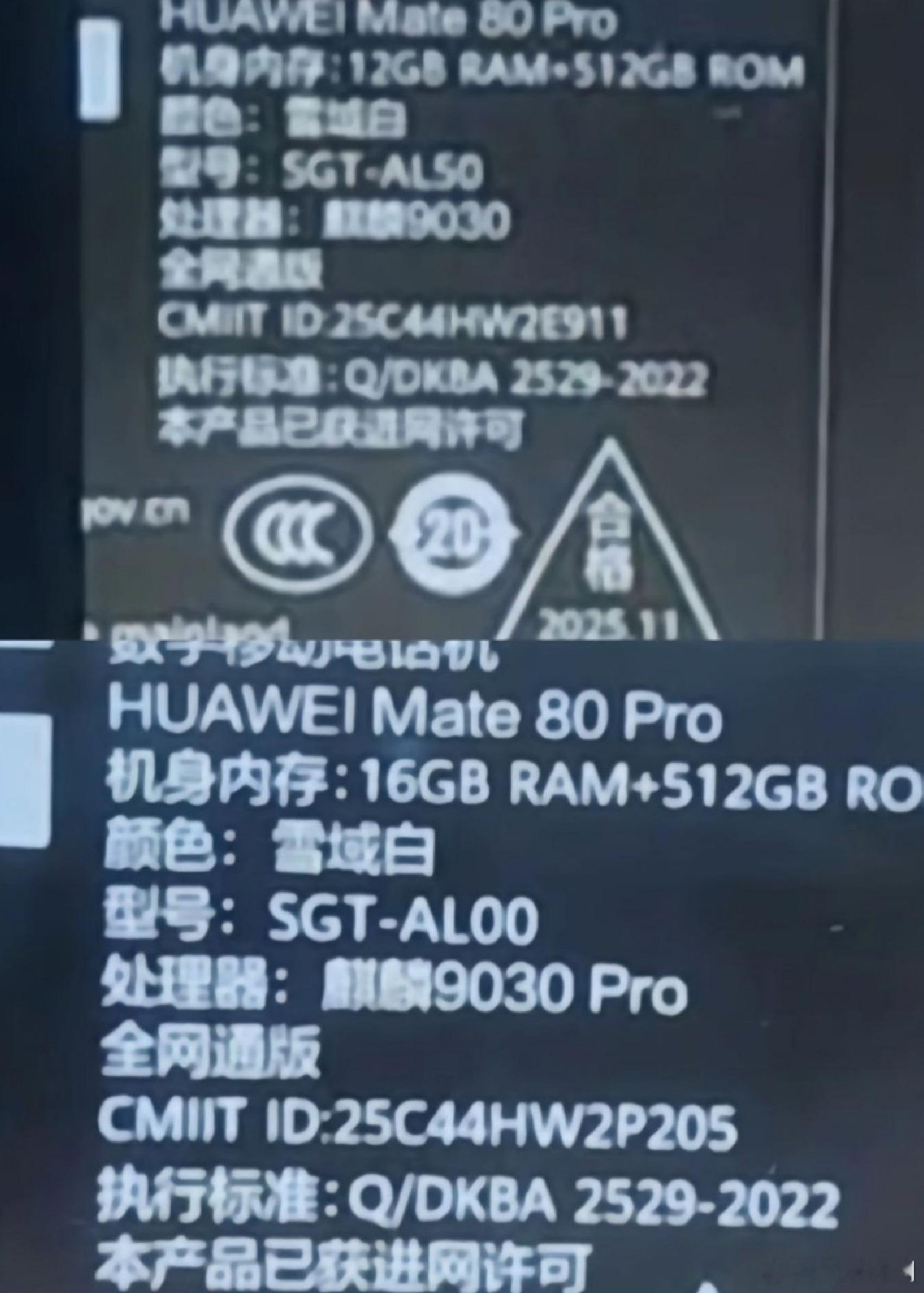 Mate80 Pro 12GB内存版本是麒麟9030,16GB内存版本是麒麟9030Pro(图源网络)