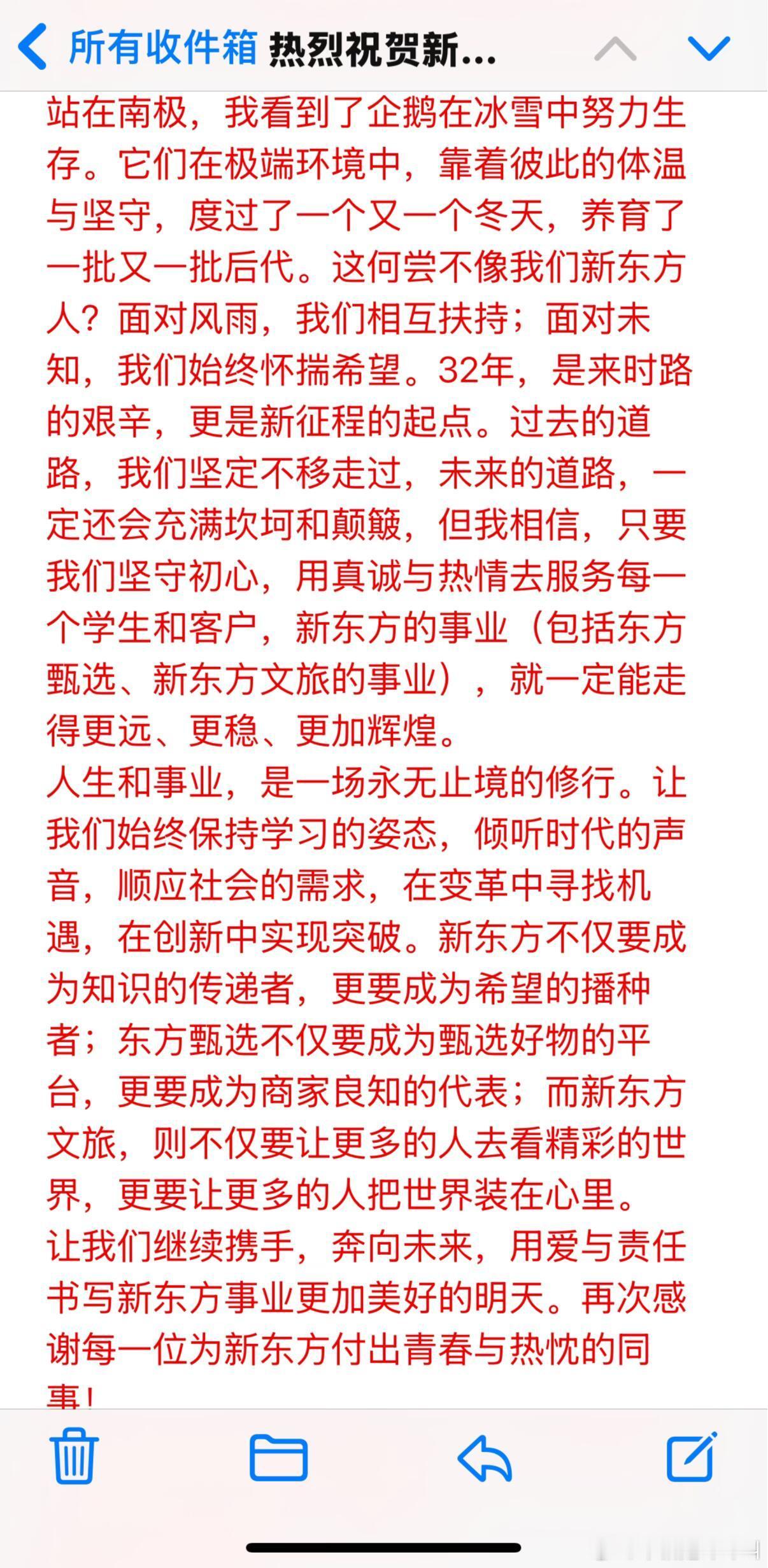 俞敏洪在南极亲自写了一封新东方32周年全员信,结果引起打工人们的不满了,打工人开始发文回应俞敏洪的信