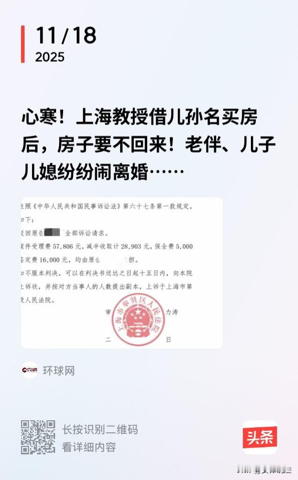 上海,7旬老教授借儿子、孙女的名字豪掷600万元买了一套别墅准备养老,事后,找儿