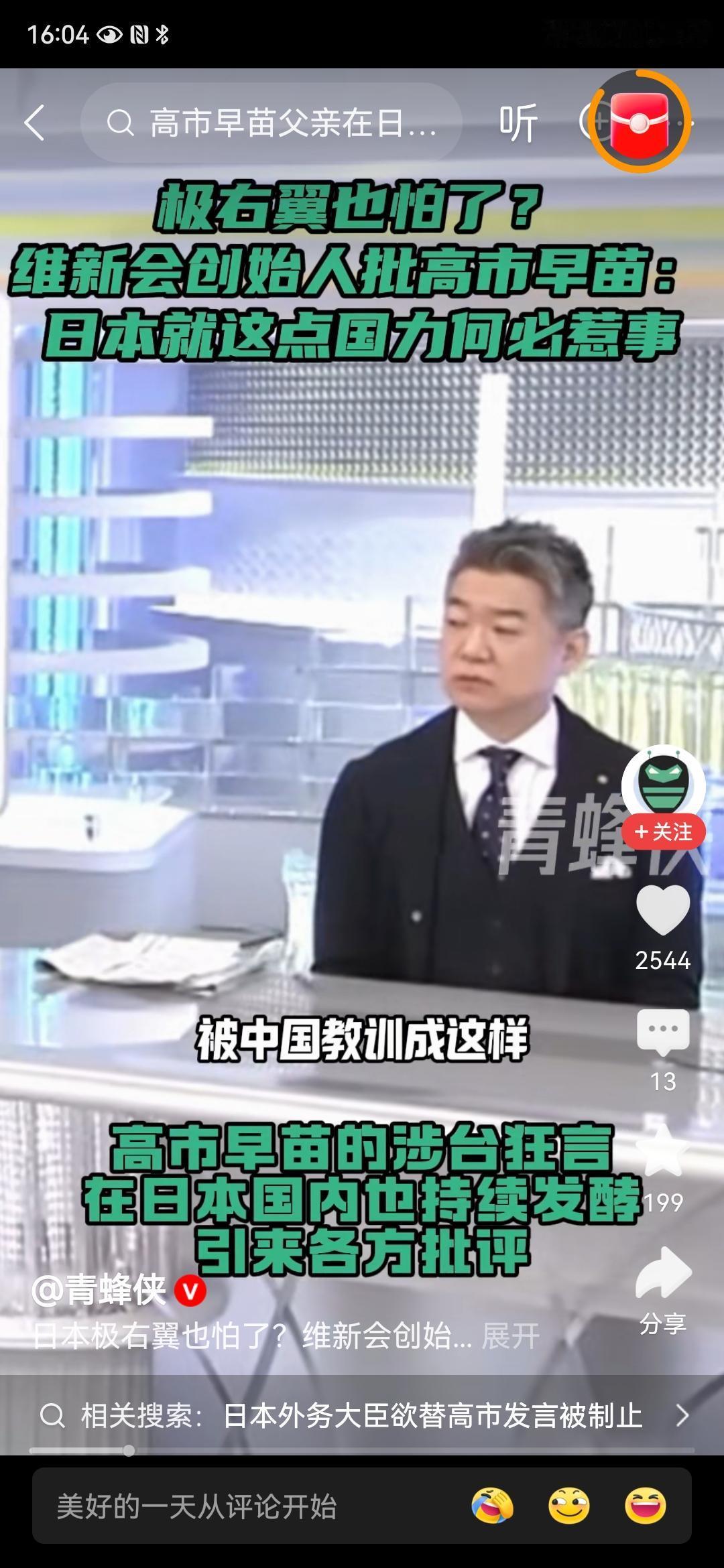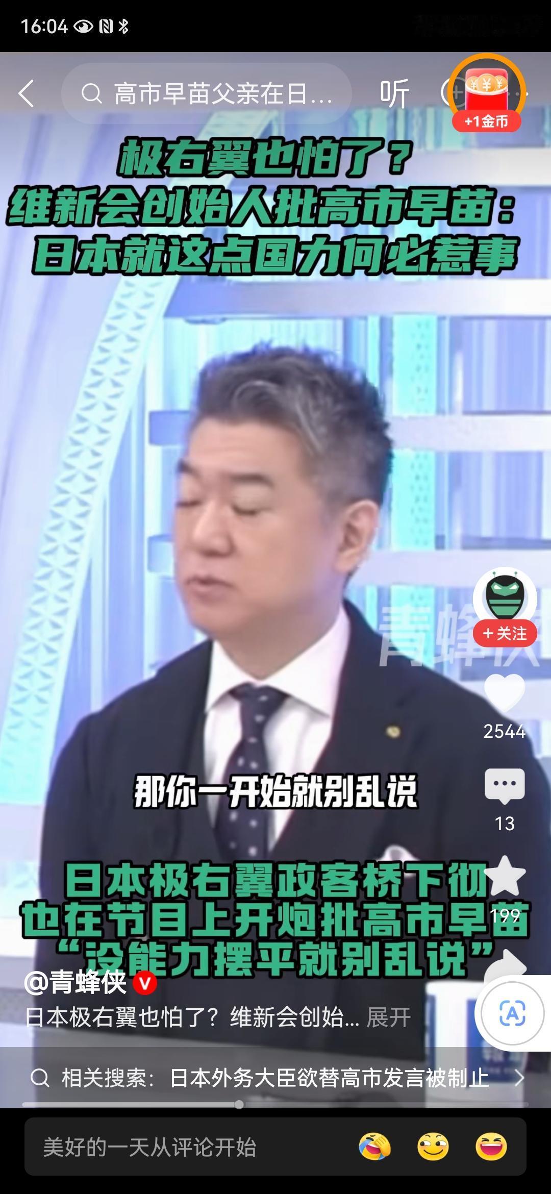 “被中国教训成这样,还不能还击,那你一开始就别乱说,日本就么点国力,干嘛去挑衅,自己又承担不了。”这是人本右翼代表“维新会”的创始人参加电视节目时说的。这家伙还算有自知之明。但不要以为他们有悔过之意,他们的态度是,打不过的时候就服软,能打过的时候再强硬。也就是左宗棠说的“小人畏威不畏德”。还是需要对日本提高警惕。 对华辱华 对华软弱