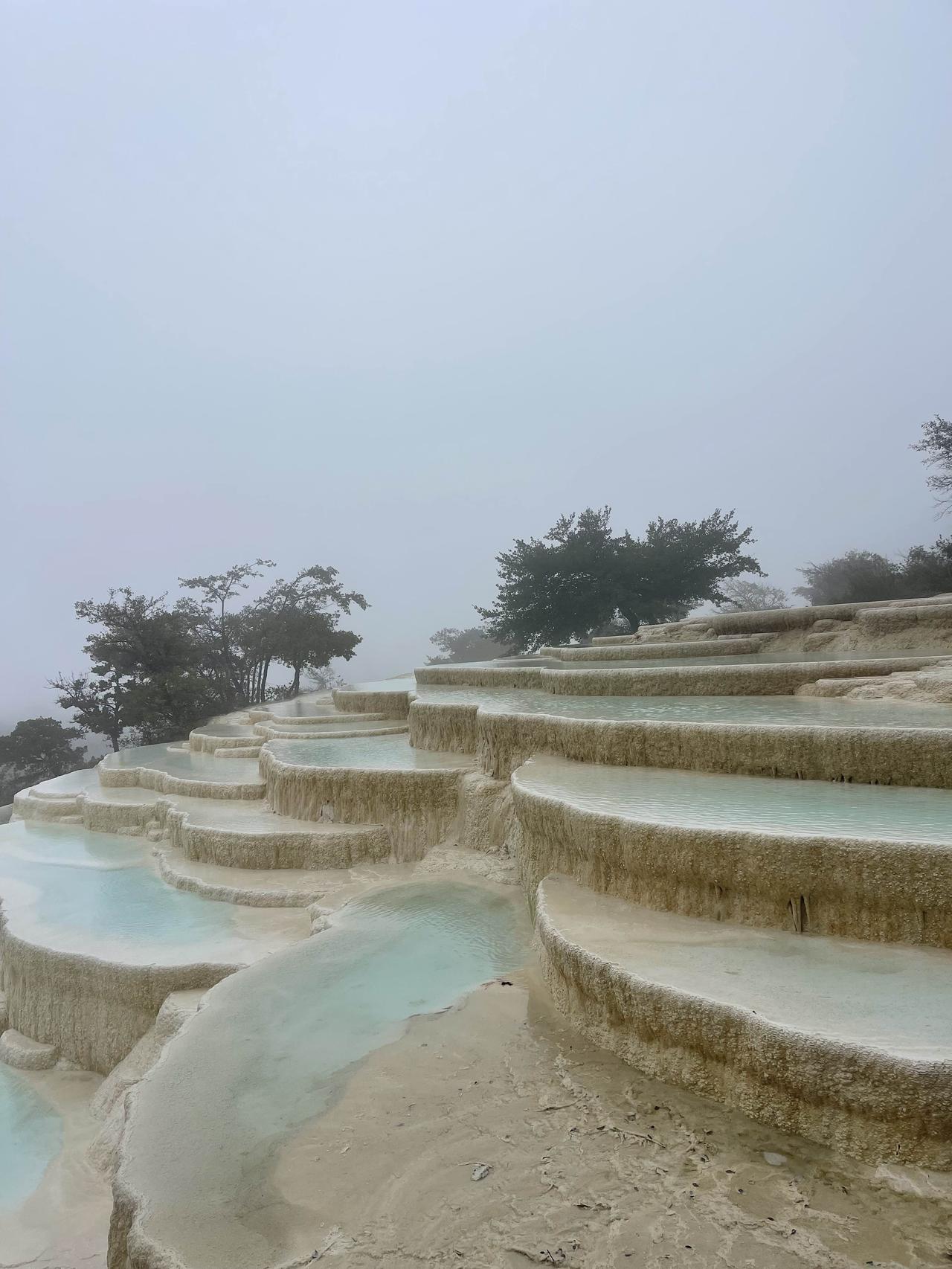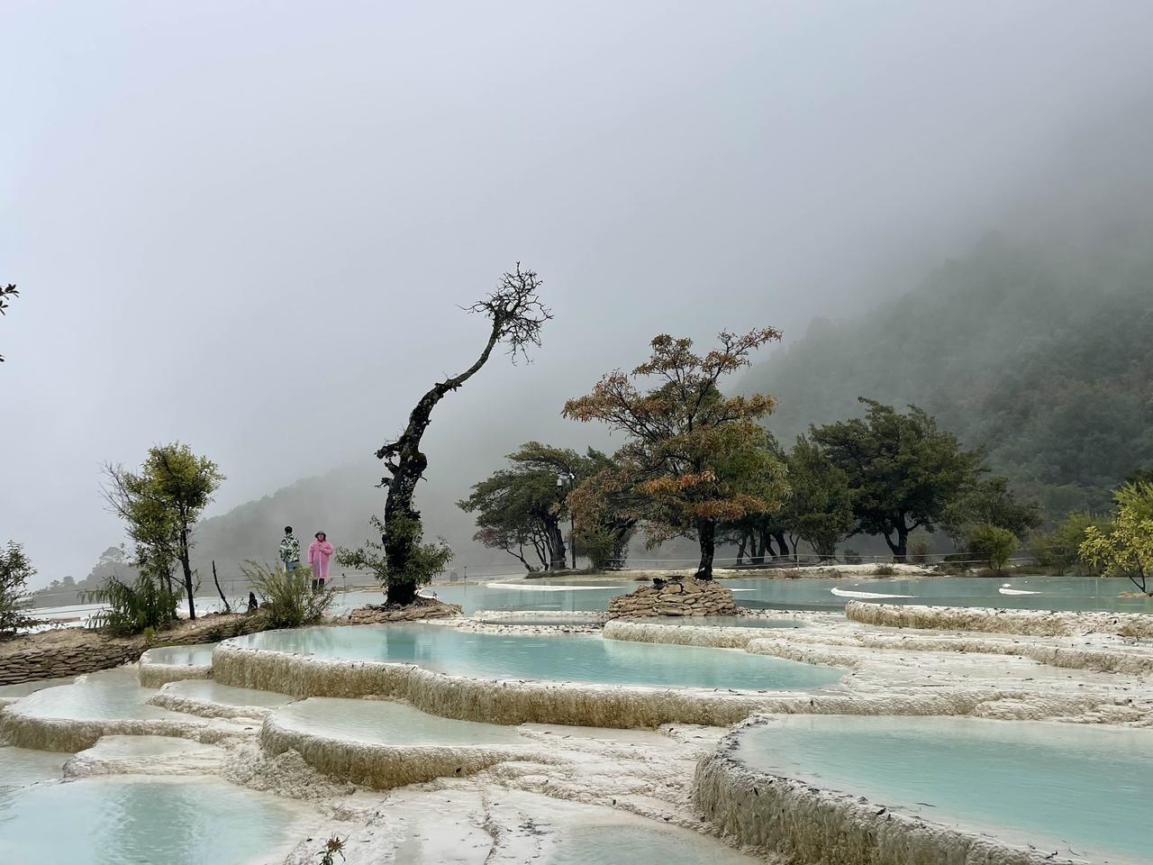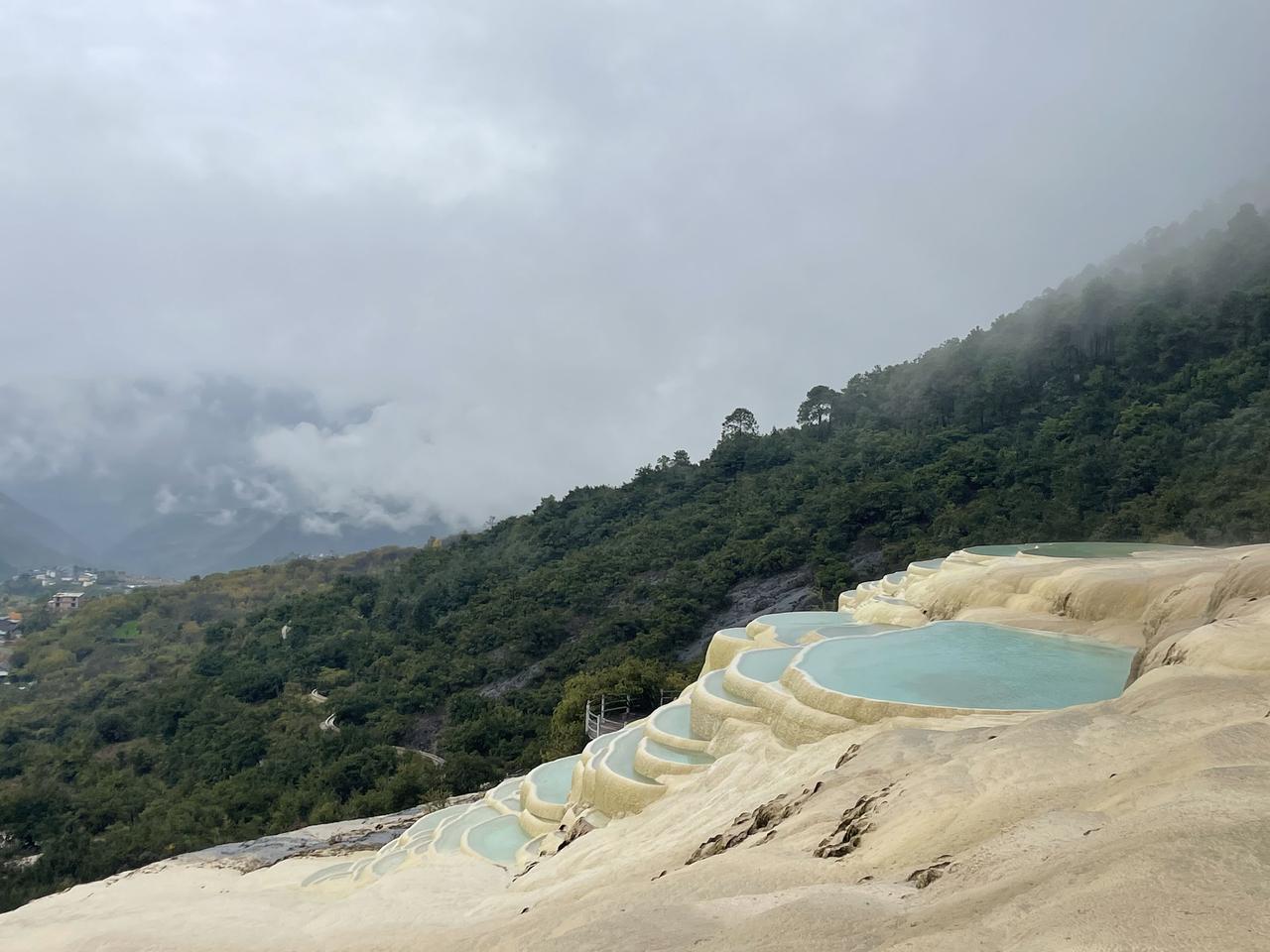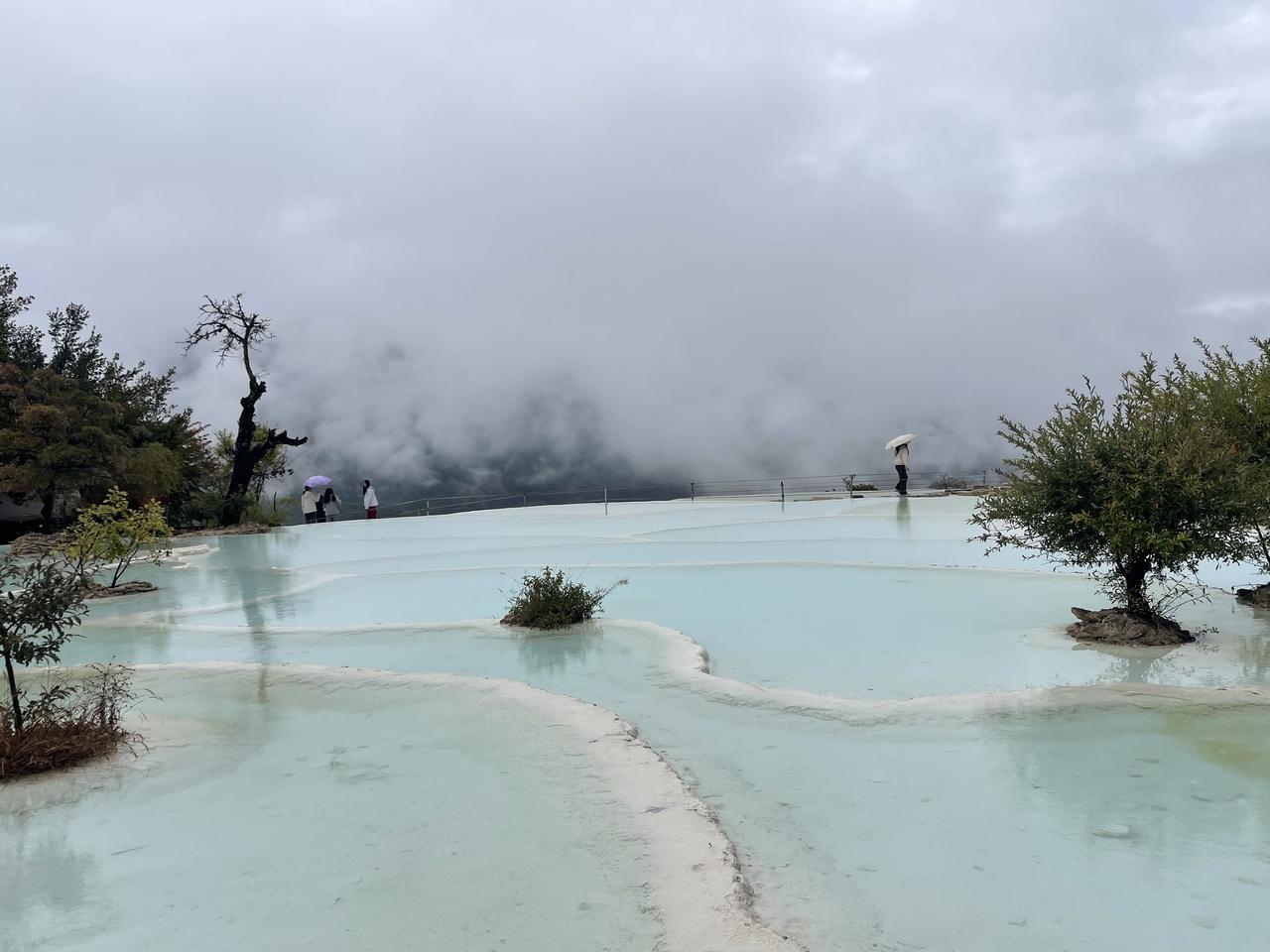 位于云南省迪庆自治州香格里拉市的白水台景区,是我国目前发现的最大的冷泉型淡水碳酸盐泉华台地。 白水台因碳酸盐长年累月的沉淀而形成的台幔,好似层层梯田,也被誉为“仙人遗田”。 白水台是纳西族东巴教的发源地,以纯净的泉水和文化底蕴而闻名,特色是可以穿过钙化区欣赏美景。