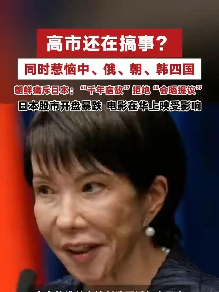 同时怒怼中俄韩朝,高市早苗的疯狂:把个人野心架在国家命运上 见过政治冒险,没见过如此“自杀式”操作!日本首相高市早苗上任不到一个月就凭一己之力把中俄朝韩四国全部得罪创造了日本战后外交最狼狈的纪录。这波操作看似狂妄,实则暴露了右翼政客最赤裸的私心——为了个人政治利益不惜把整个国家推向冲突的悬崖。 31年前的一段视频早已埋下伏笔:时任议员的高市早苗在国会当众怒怼首相村山富市,质问“凭什么承认战争错误”。而村山富市的回应振聋发聩:“当时的政府确实犯下巨大错误!” 那时的她就敢挑战历史正义,如今掌权后更是变本加厉涉台问题上,她公然将“台湾有事”与日本“存亡危机事态”绑定,暗示自卫队可武力介入,遭到中方多部门连环严正交涉,解放军更是用日文警告“必遭迎头痛击”;独岛问题上,她的错误表态让韩国直接召见日本公使抗议,还把“韩日中”的表述改回“韩中日”,用行动打脸其外交挑衅;对俄罗斯,她被直指奉行“复仇主义”,对朝鲜则被痛斥为“千年宿敌”,连会晤提议都被直接拒绝。 更讽刺的是,她的疯狂连本国国民都无法忍受。长崎、冲绳县知事坚决反对她修改“无核三原则”,直言“作为核爆受害地区绝不接受”;日本网友怒斥其“亡国级轻率”,前首相们联名警示,民众走上街头抗议,担心被她拖入战争泥潭而她一心讨好的美国,却让特朗普轻飘飘一句“盟友未必是朋友”与之划清界限可谓热脸贴了冷屁股。 说到底,高市早苗的所有挑衅都是精心算计的政治表演:否定历史讨好保守派选民,对华强硬向美国递投名状,炒作外部矛盾转移国内经济停滞的困境。但她忘了,历史正义不容篡改,国家主权不可侵犯,地区和平经不起折腾。一个把个人野心凌驾于国家利益和民众安危之上的政客,终将被历史唾弃。 如今的高市早苗早已陷入四面楚歌,内外反对声浪此起彼伏。这也给所有右翼势力敲响警钟:任何试图为侵略历史翻案、破坏地区和平的行径,都必将搬起石头砸自己的脚。你怎么看这位“四处点火”的日本首相?欢迎在评论区留下你的观点!