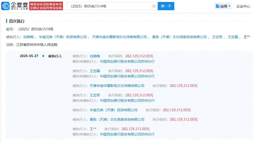 【王中磊近期被执行2.8亿】王中磊王中军等近期被执行2.8亿近日,因华谊兄弟联合