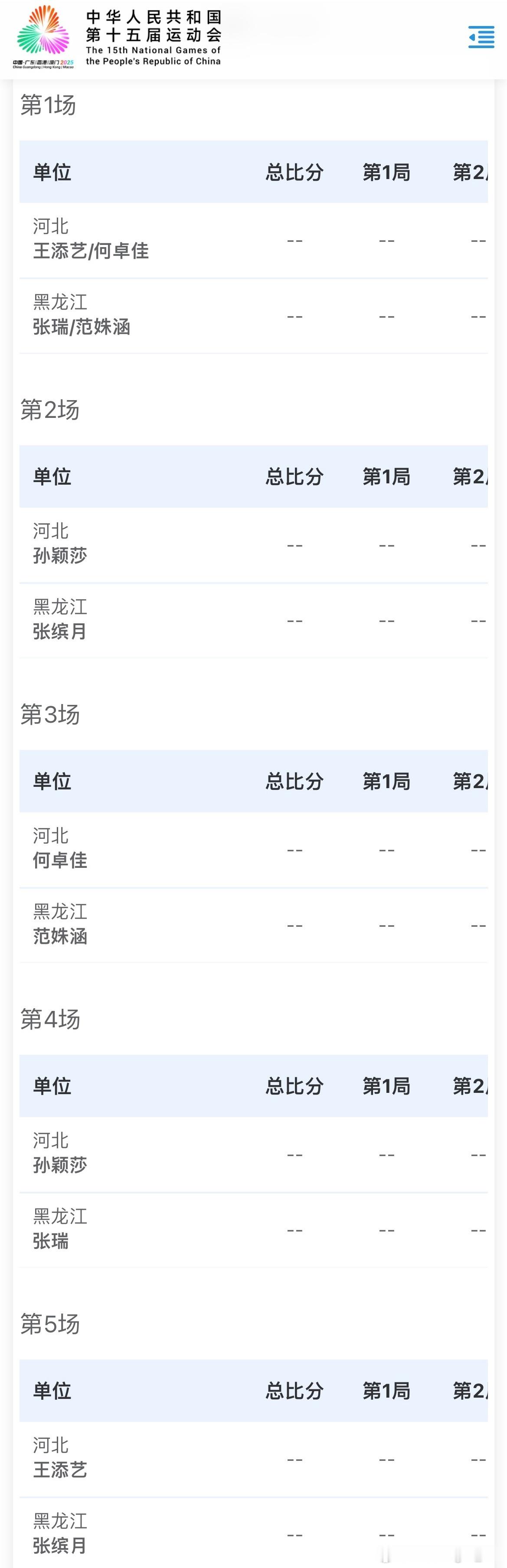 女子团体半决赛河北🆚黑龙江王添艺/何卓佳🆚张瑞/范姝涵孙颖莎🆚张缤月何卓佳🆚范姝涵孙颖莎🆚张瑞王添艺🆚张缤月