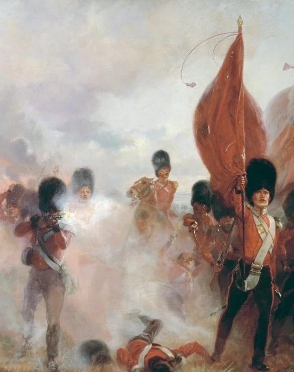 克里米亚战争中的苏格兰人 Elizabeth Thompson(1846–1933),英国画家,是19世纪少数以战争题材著称的女性画家之一。她的作品以描绘英军英勇作战而闻名,尤其擅长表现士兵的心理状态与战场氛围。 这幅作品《苏格兰卫队在阿尔马推进》“Advance of the Scots Guards at the Alma”描绘了1854年克里米亚战争阿尔马战役(Battle of the Alma)中,英军苏格兰卫队向俄军阵地发动进攻的场景。 阿尔马战役(Battle of the Alma)是 克里米亚战争 中的首场大规模陆战,是英法土联军自9月14日登陆克里米亚后首次与俄军正面交锋的关键战斗。 联军于9月14日登陆克里米亚,19日进抵阿尔马河。俄军退守南岸高地,居高临下,占据有利地形。 20日拂晓,联军发起进攻。法军在右翼(靠近海岸)由博斯凯(Bosquet)师攀爬悬崖,成功迂回俄军左翼,英军则在左翼正面强攻俄军右翼和中路。 英军轻步兵师和第2师等部队在炮火下强渡阿尔马河,攻占河边村庄,随后向高地推进。尽管伤亡惨重,但英军凭借米尼步枪的火力优势,逐步压制俄军。 面对联军夹击,俄军节节败退,最终全线撤退,丢弃大量装备与伤员,向卡恰河方向撤退。 俄军约有5,000–6,000人伤亡,联军约有3,000人伤亡(英军约1,500人,法军约1,200人)。 联军取得决定性胜利,打破俄军不可战胜的神话,并为后续围攻塞瓦斯托波尔奠定基础。 画作描绘了苏格兰卫队上尉 Lindsay高举团旗,率领士兵在阿尔马战役中冲锋的场景。这是在俄罗斯军队突破威尔士军团防线后,英军发起反攻的关键时刻。 虽然作品带有浪漫主义色彩,但画家以高度写实的细节著称,真实展现了战场上的混乱、泥泞、疲惫与恐惧。画中士兵的表情既有坚定也有惊慌,体现出战争的真实人性。 构图特色:画面中有两名倒下的士兵,背景是硝烟弥漫的战场,增强了战争的临场感与悲剧性。她刻意避免描绘近距离肉搏,而是聚焦于士兵的集体行动与情绪状态。 审美积累 每日分享一幅名画作品 女性艺术家 克里米亚战争 战争