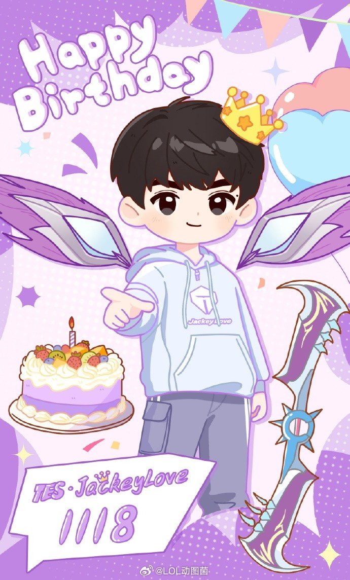 TES祝JKL生日快乐:愿一往无前的少年 永远比期许更耀眼一分!出道即冠军的选手又成长了一年,已经是队里的老大哥身份了,希望新的一年,JackeyLove能再创新高,再次举起那个奖杯!