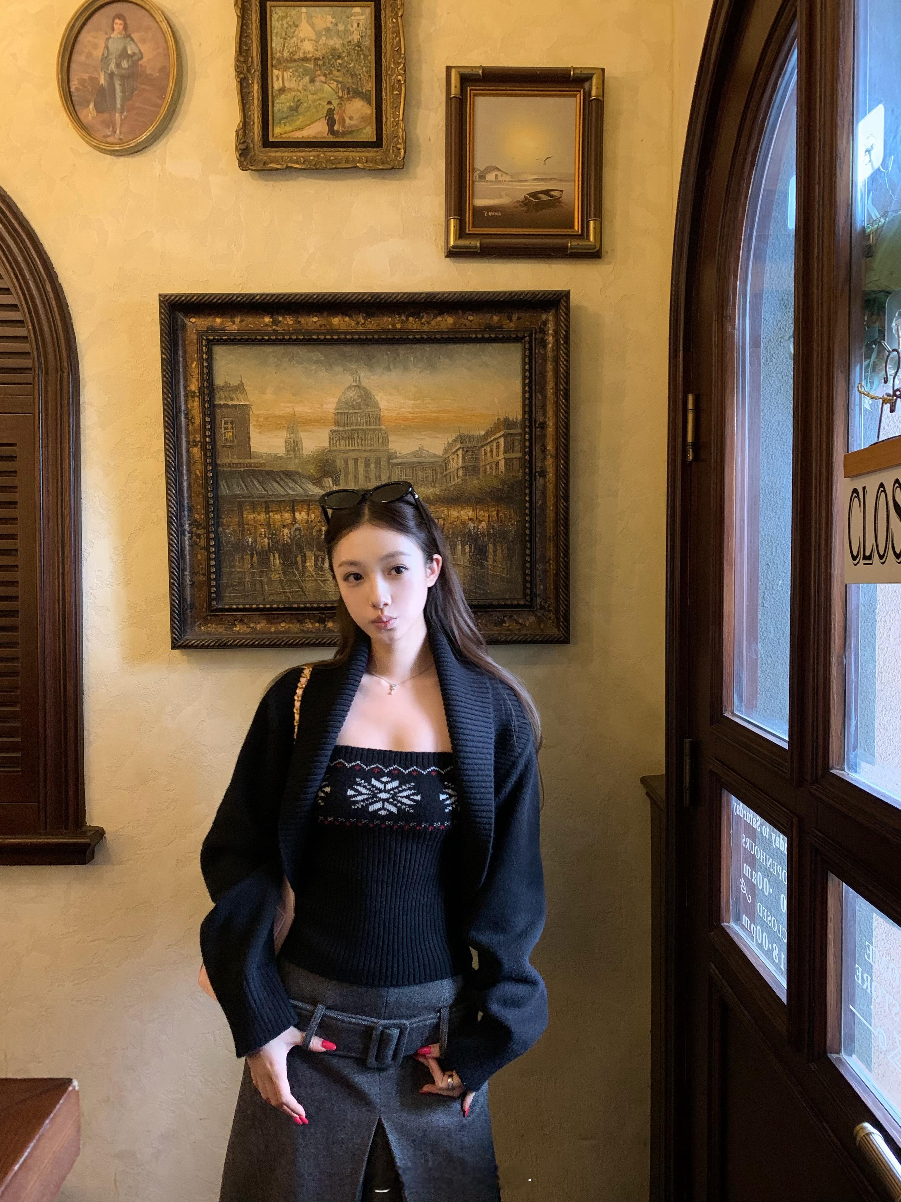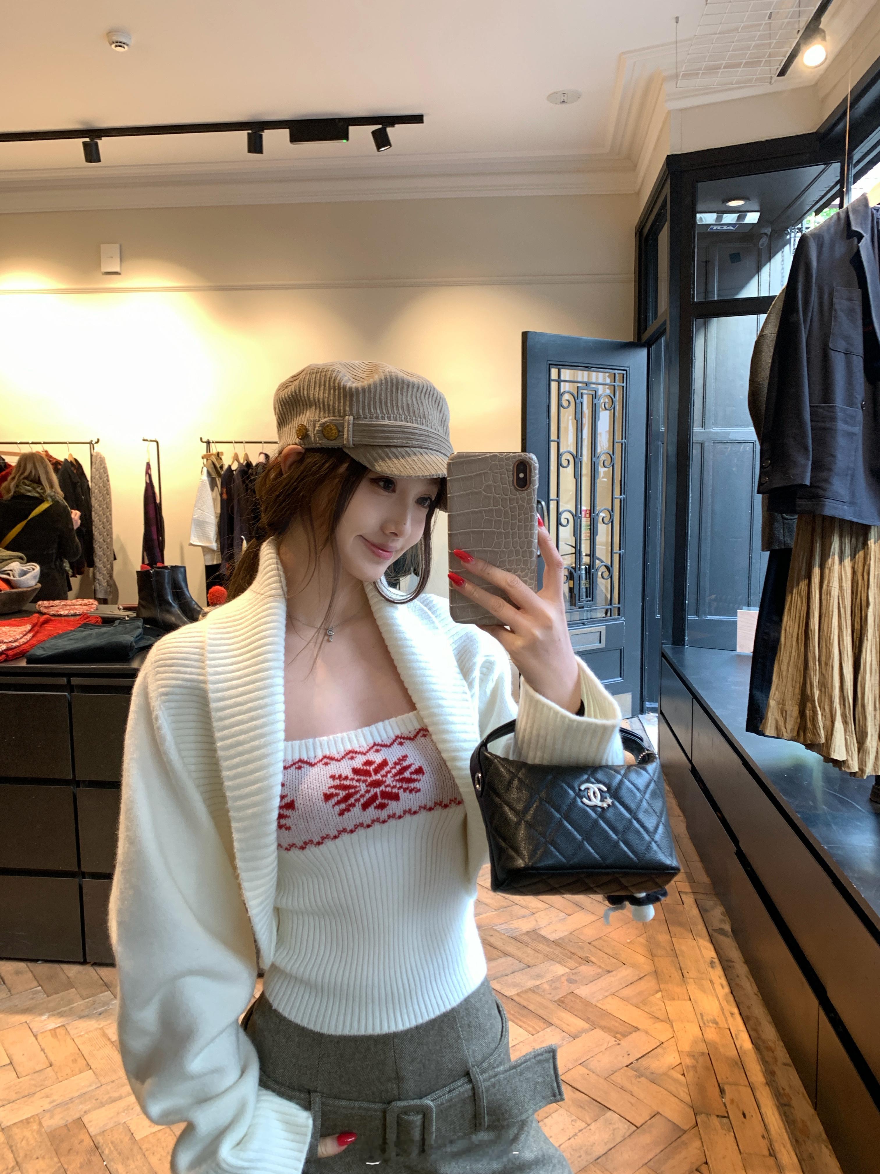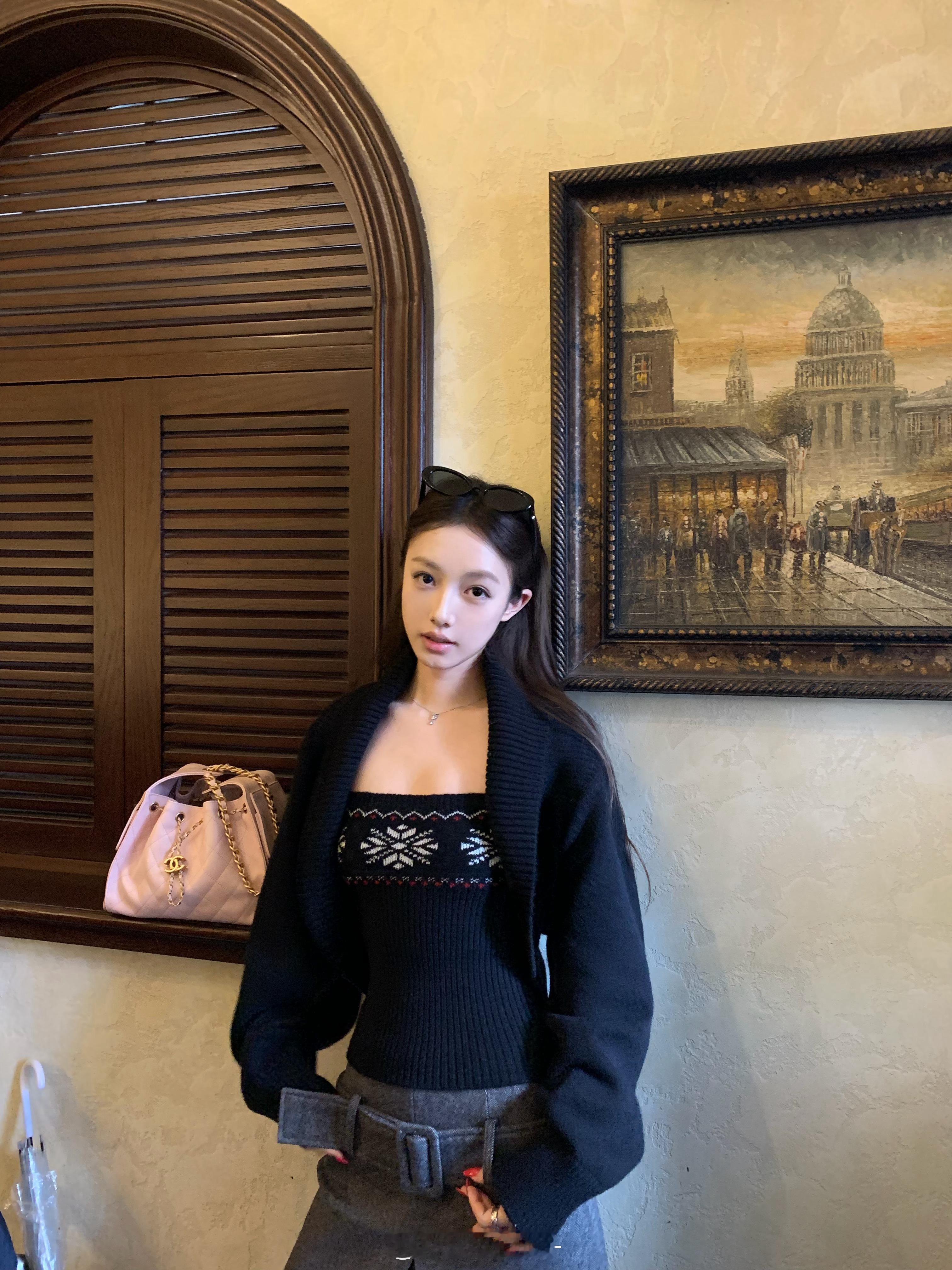 疯狂心动的吊带+罩衫套装来了!!☃️真的 hin 懂女孩子的身形曲线 显瘦就是目的!以费尔岛元素为核心 上衣是短款坎肩罩衫 适配多种内搭 一套or分开搭都🆗👍🏻🍎揪2️⃣50⭕️❗️