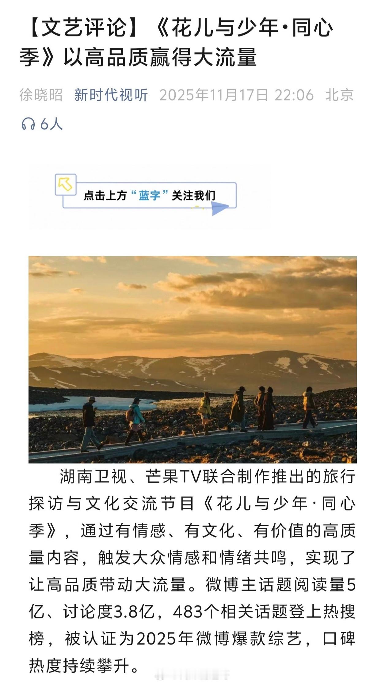 广电表扬《花儿与少年同心季》:以高品质赢得大流量