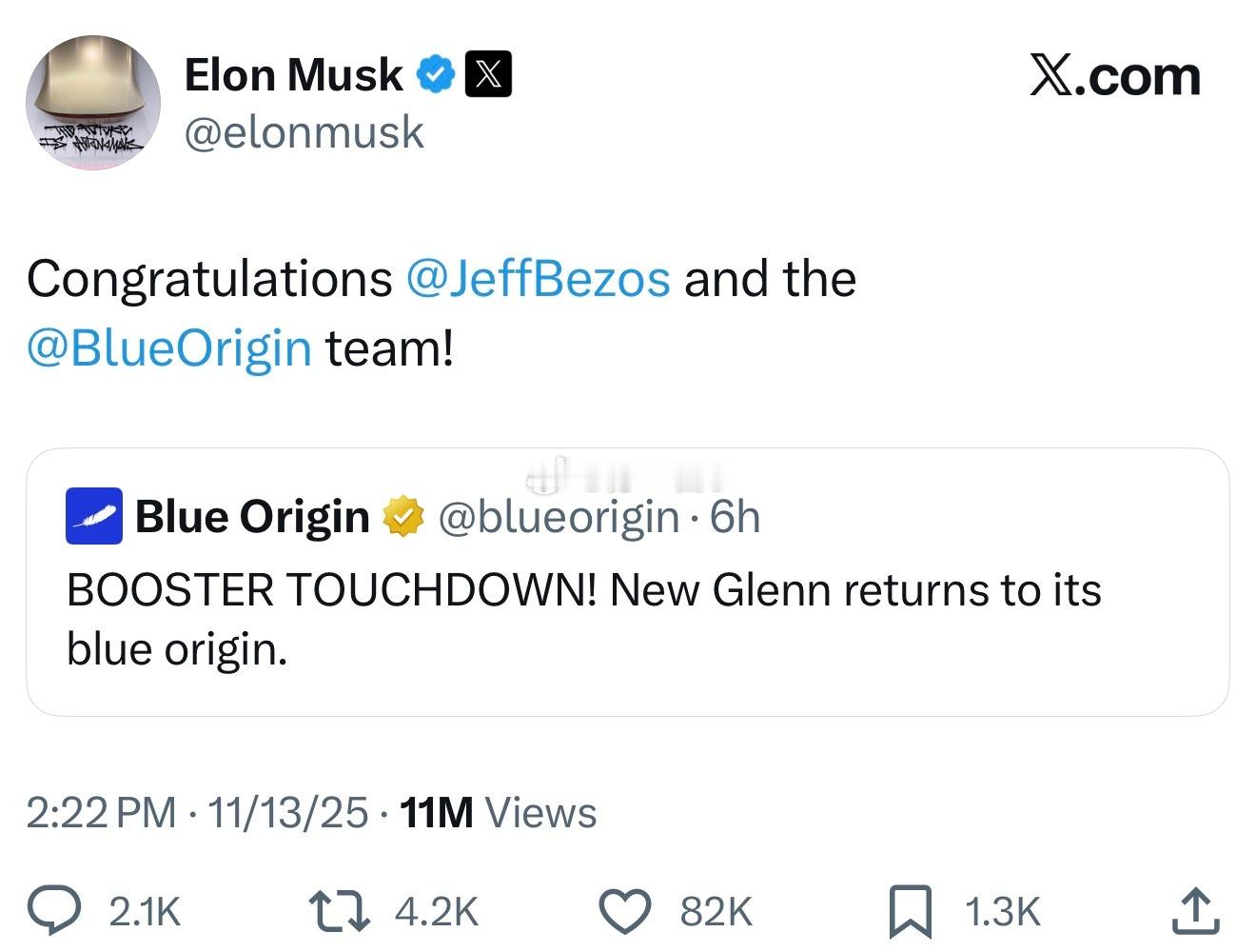 才看到马斯克公开嘲讽贝佐斯“copycat”因为贝佐斯也创立了一个专注AI的公司——Prometheus(普罗米修斯),已经获得了62亿美金的初始资金(其中一部分来自贝佐斯自己)图二:马斯克前几天才发文恭喜贝佐斯的蓝色起源成功发射巨型新格伦火箭,并首次成功回收了助推器(👉)他俩之间有过好些年的龃龉()前阵子以为关系总算是缓和了些()没想到……并没有啊🙉