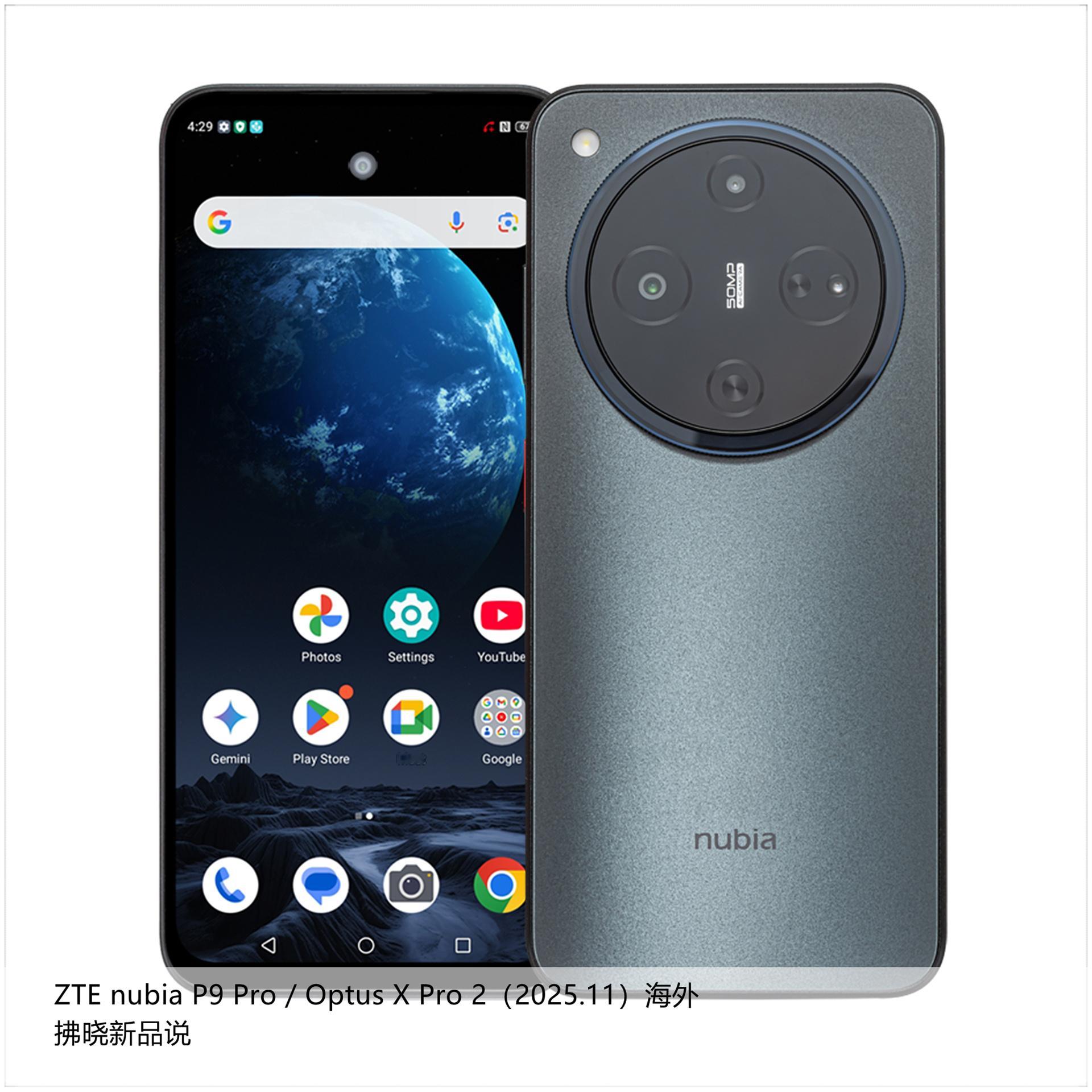 【拂晓新品说】ZTE nubia P9 Pro / Optus X Pro 2(海外):- 发布时间:2025年11月;- 处理器:紫光 展锐T8300;- 存储:?;- 屏幕:6.7英寸LCD水滴屏、1600×720分辨率、120Hz屏幕刷新率、263 PPI;- 影像:后置5000万像素镜头(?)+200万像素景深镜头(?)+8万像素辅摄(?)“三摄”,前置800万像素镜头(?)“单摄”;- 续航:5000mAh电池+10W有线充电;- 其他:侧边指纹识别、3.5mm耳机接口、NFC、支持Micro SD卡扩展(至高2TB);预装基于Android 15的操作系统,机身厚度约8.3mm,净重约198g;始发“黑色”一个版本,定价未知(4GB+128GB)。★注:相关数据源于网络,不同地区版本或略有差异,最终以官方信息为准。