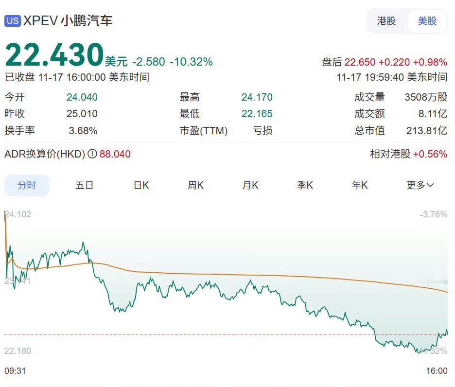 发生了什么?美股小鹏汽车最大跌幅超10%小鹏昨天发布了第三季度财报财报显示,Q3业绩关键指标全面创下新高营收同比翻番,综合毛利率突破20%创新高净亏损同比大幅收窄近80%预计Q4交付和营收同比增长均超过30%数据上还是不错的~