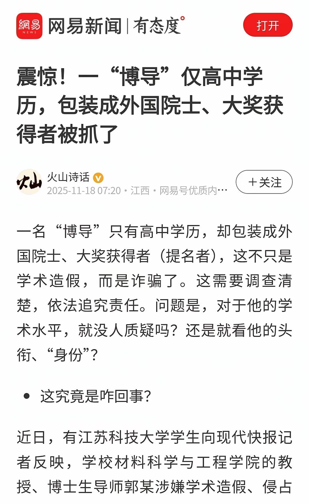 这个人的事是真的吗?太不可思议了。 在科技大学任首席科学家的履历造假,文章、奖项全是造假,国外履历也是一手PS,科学不是来不得半点虚假的吗?难道同行、同事都看不出来吗?怎么能造假过关? 实际上还真有造假成功的,汉芯一号的陈进,大家还记得吗? 这个人的事,还要看看后续如何?