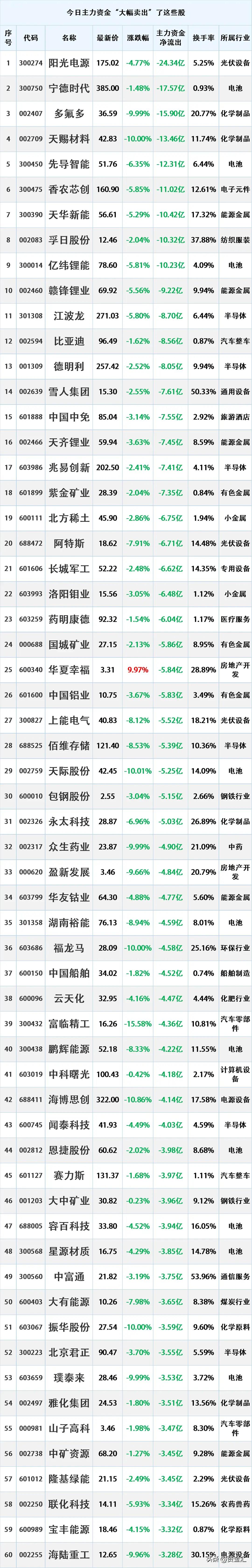 尾盘资金出逃,11月18日主力资金大幅流出的股票名单。 资金流出是指在一定时期内(如一天、一周等),主动卖出某只股票的资金量大于主动买入该股票的资金量。主动卖出是指投资者以买方的报价直接成交,显示出投资者对该股票的消极持有或抛售意愿。