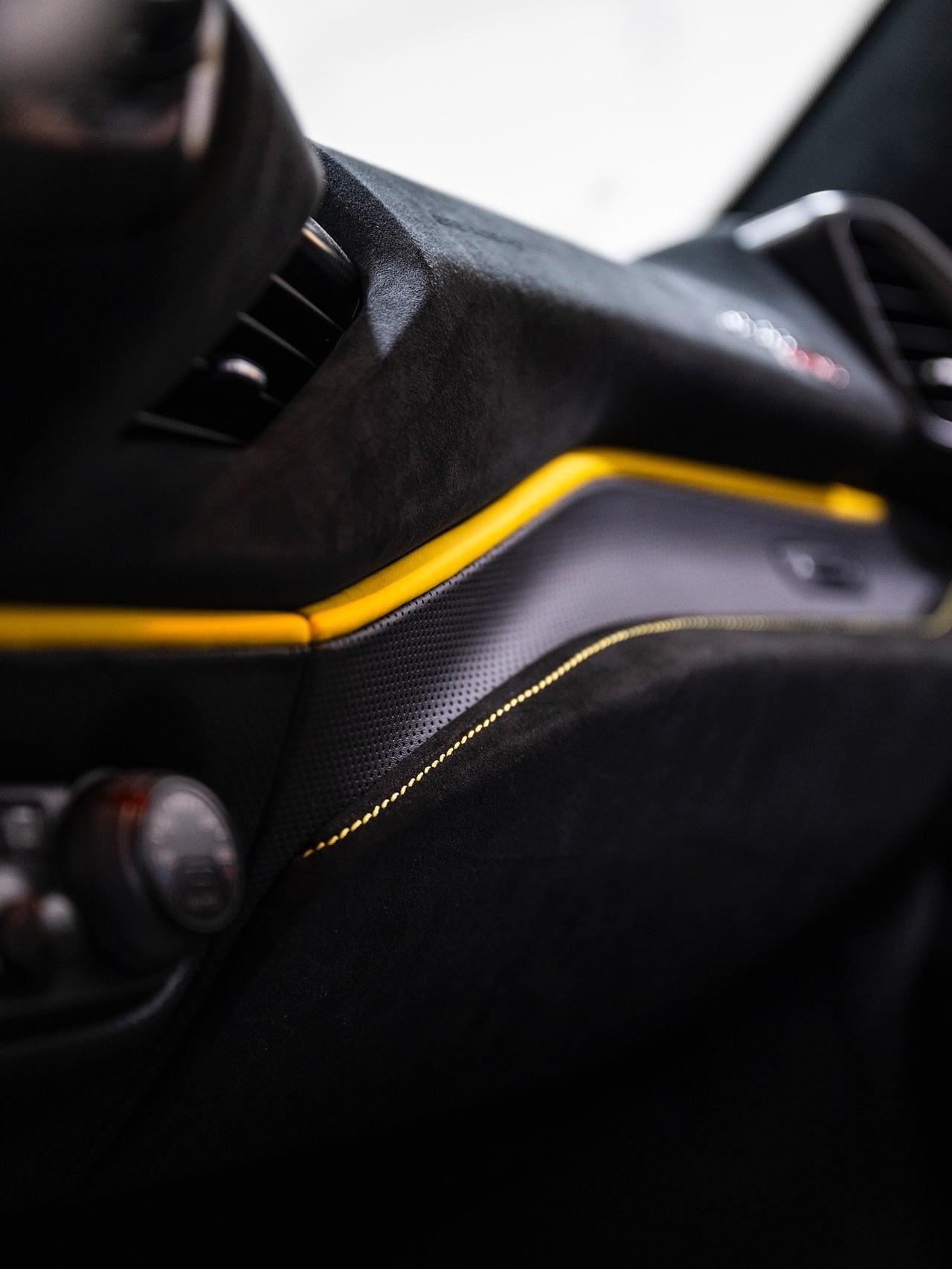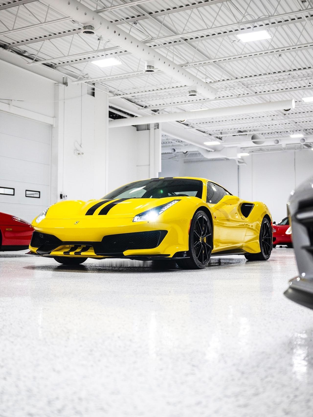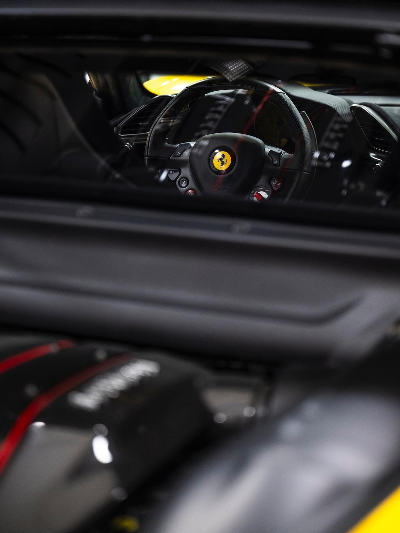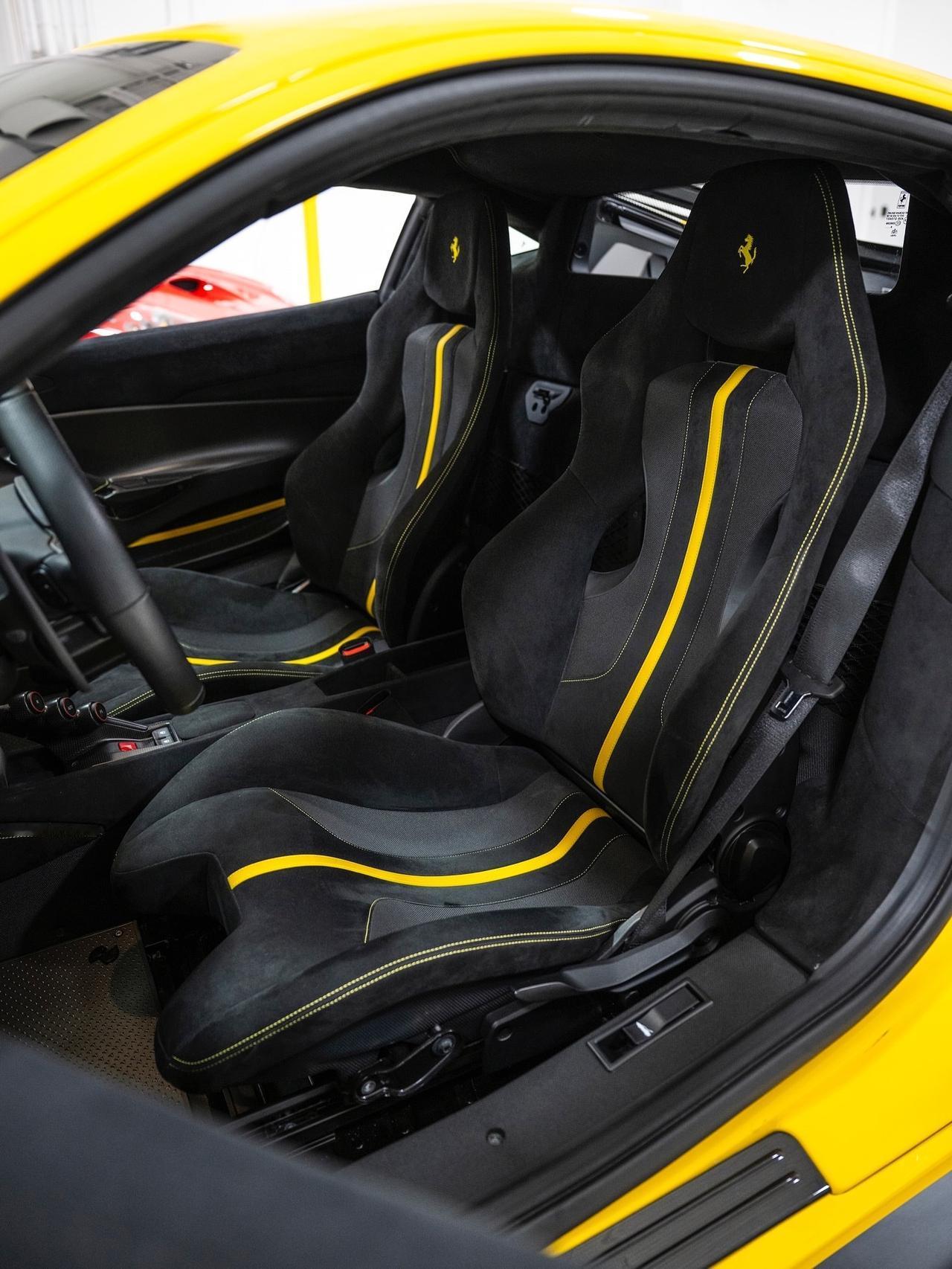 蜜蜂Pista!这辆外观设计精美的法拉利488 Pista,采用了经典的吉拉洛·莫德纳黄色,搭配痛苦的黑条纹和锻造喷漆轮圈。内部设计将一切完美融合,碳纤维赛车座椅、颜色匹配的吉拉洛皮革装饰、缝合线以及头枕上的小马标。所有内饰的碳纤维装饰也选择了独特的哑光处理。这是一台真正的赛道机器。