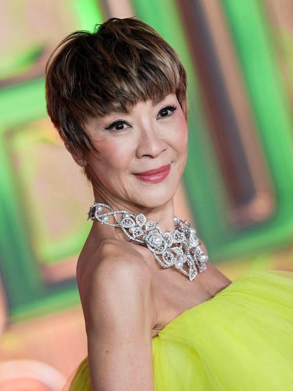 杨紫琼亮相《魔法坏女巫2》纽约首映礼,微商短发造型被网友吐槽说有点像“低市晚苗”,你觉得像吗?