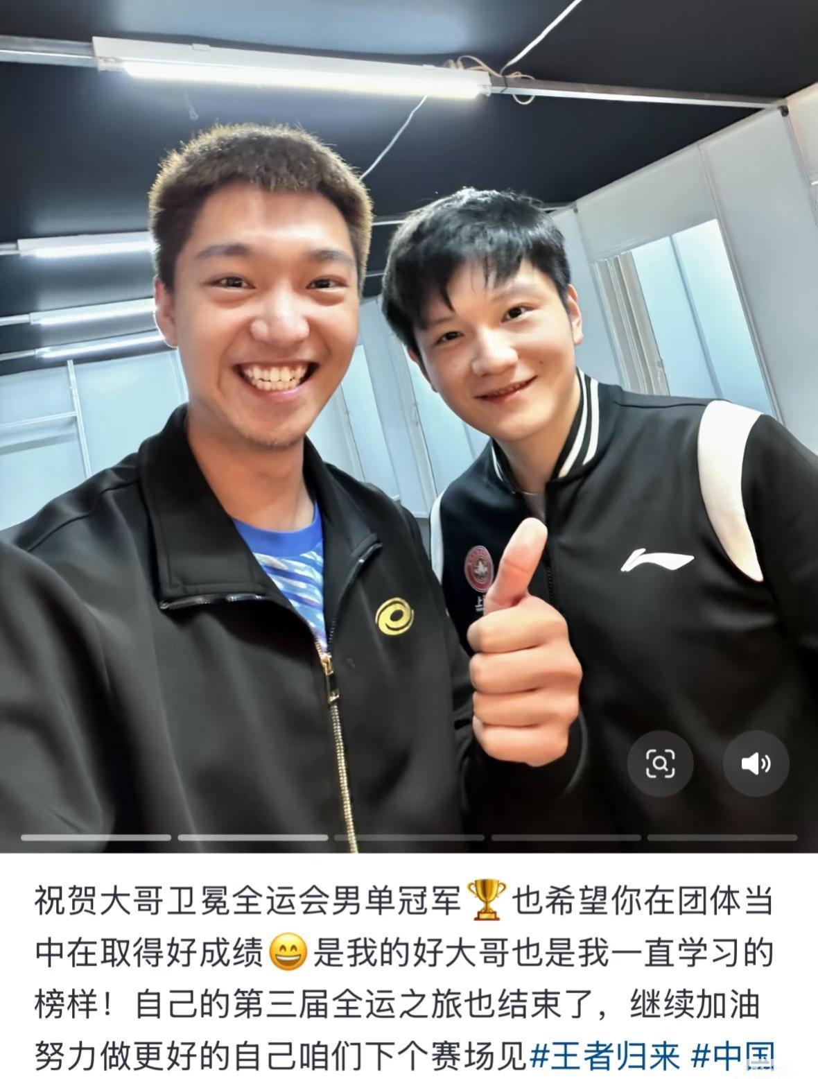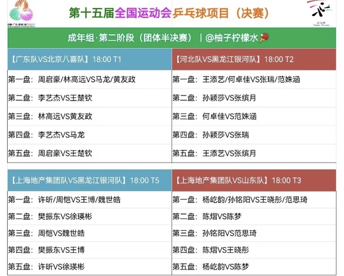 全运会男团半决赛上海VS黑龙江 樊振东3:1徐瑛彬 上海队晋级决赛稳了 第一盘许昕/周恺3:2王博/魏世皓 5:11,9:11,11:5,11:8, 第二盘 樊振东3:1徐瑛彬 11:5,11:9,11:7 不得不承认今天许昕/周恺让二 追三打的太顽强,团魂炸裂, 老将许昕也是拼了, 只要双打赢了, 基本上海队晋级决赛稳了! 因为单打有樊振东兜底, 樊振东打徐瑛彬,太燃啦, 徐瑛彬的实力非常强大, 不然也竞争不到成都混团的名额, 樊振东真牛👍, 遇强则强啊! 就像邓亚萍在直播间盛赞樊振东 现在的技术水平已经达到新 境界,360度混身都是球!