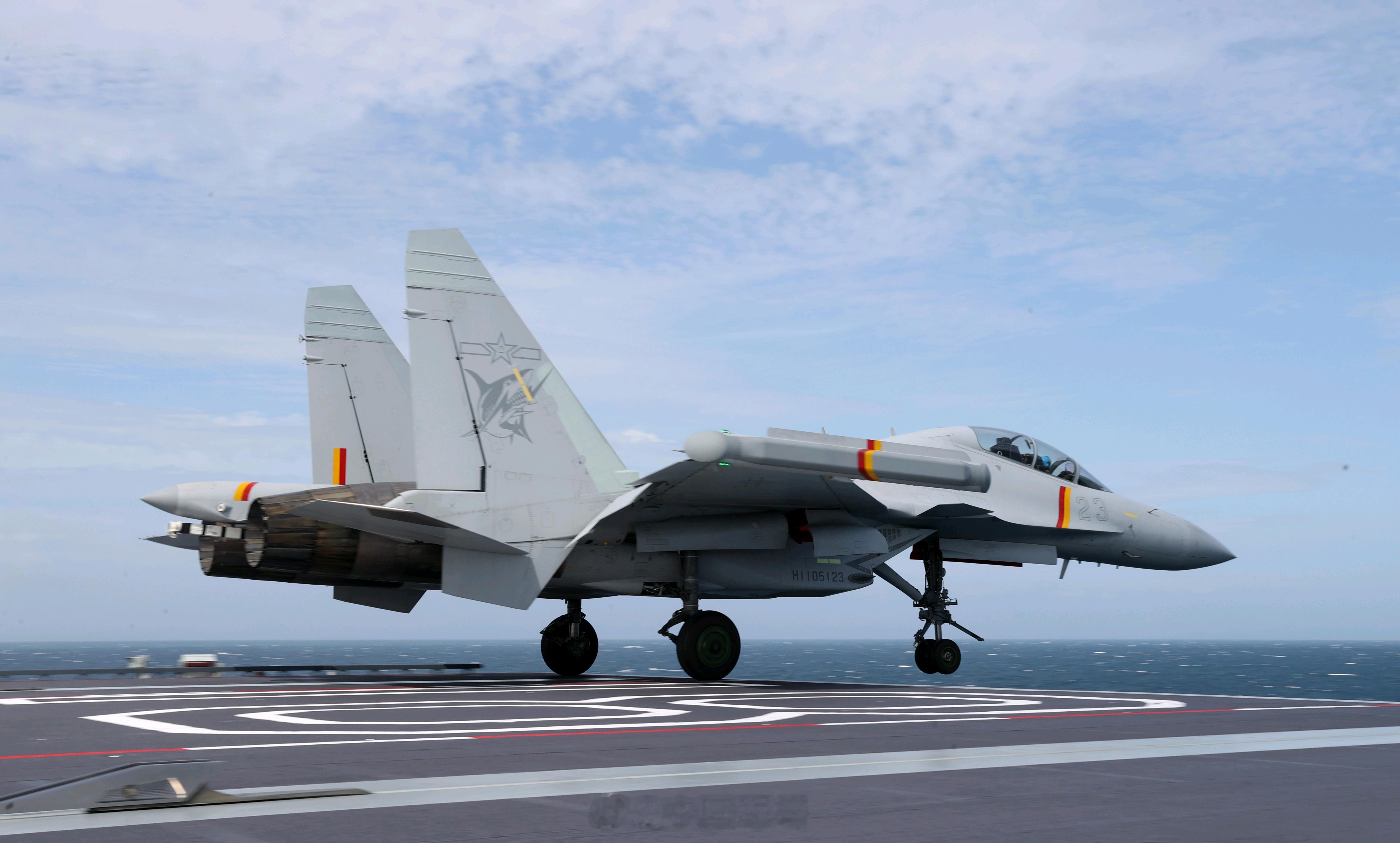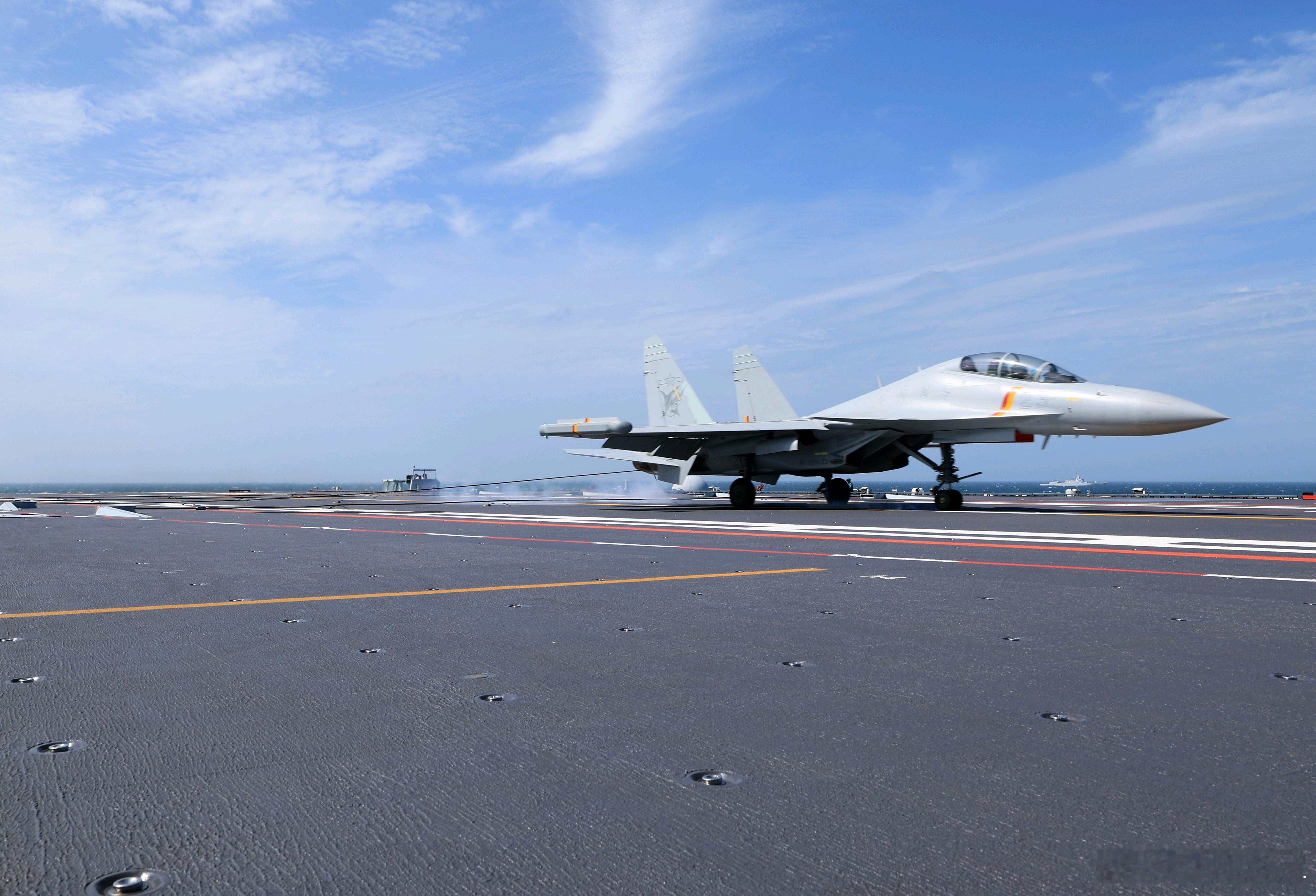 福建舰上的歼-15DT电子战机电磁弹射和阻拦着舰好图后舱无人,难得一见