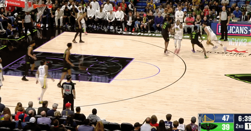空切创造空间。理查德空切,为弱侧底角希尔德创造了空位机会。如果图1还不够明显,可能有偶然性,那么图2,空切拉走两个人,连续两个回合给希尔德训练般的空位机会。顺便一提,连续投进两个三分后,希尔德下一回合又是没人管的空位。鹈鹕的防守仿佛“防勇士三分就是只防库里”。赫伯特琼斯真是鹈鹕防守的遮羞布。