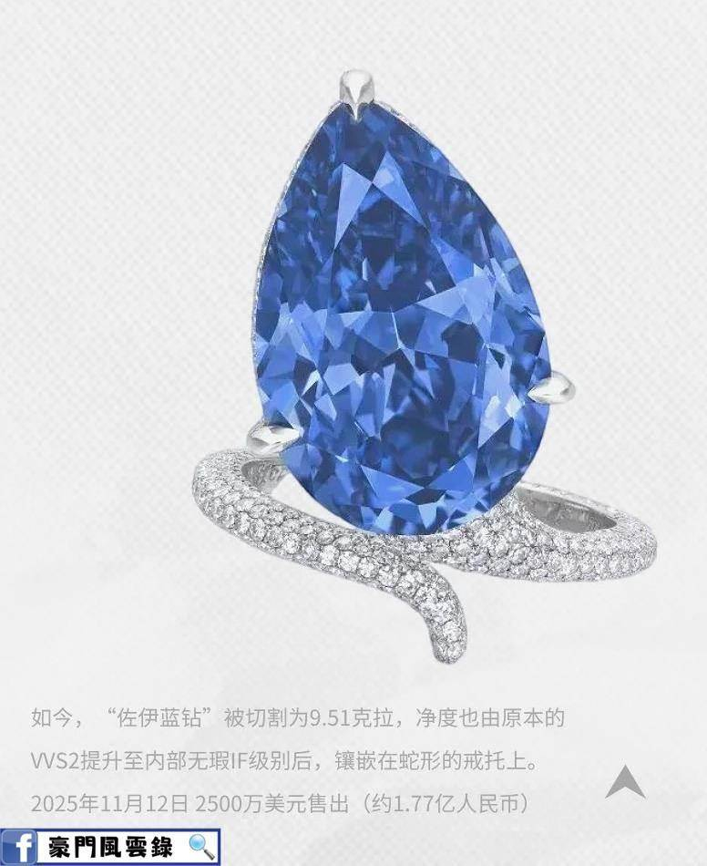 刚刚结束2025年佳士得的秋拍,刘銮雄的“ZOE”被约2500万美元拍走,不包含其他费用的话,在11年的时间里,这颗鉆石亏损了大约4800 万人民币1. 2014 年购买情况购买价格:3264.5 万美元(约 2.3 亿人民币)购买地点:纽约苏富比拍卖会("保罗・梅隆夫人收藏" 专场)钻石参数:9.75 克拉艳彩蓝钻,水滴形,VVS2 净度命名由来:刘銮雄以女儿 Zoe 之名命名,称为 "The Zoe Diamond"2. 2025 年拍卖情况拍卖价格:2052.5 万瑞士法郎(约 2559 万美元,1.82 亿人民币)拍卖地点:日内瓦佳士得 "瑰丽珠宝" 专场(11 月 11 日)钻石状态:已重新切割,重量减至 9.51 克拉,但净度提升至 IF(内部无瑕)拍卖名称:"梅隆之蓝"(The Mellon Blue),恢复原名~~~~~~~~~~~~~~~~查了一下,刘銮雄投资的好多东西都是亏的
